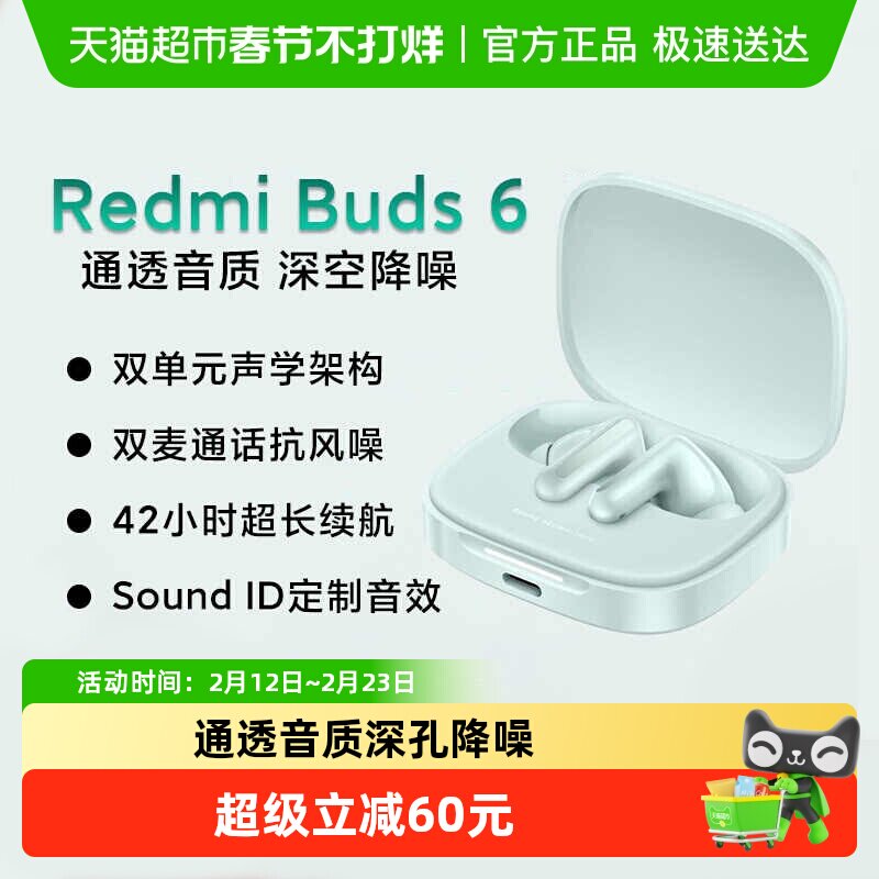 📚 RedmiBuds6小米红米真无线蓝牙降噪耳机49dB降噪42小时长续航