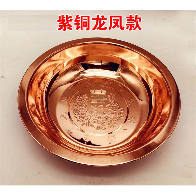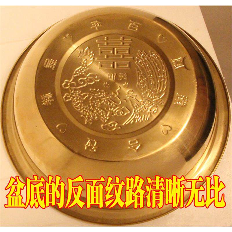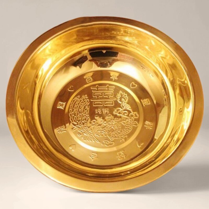 📚 纯黄铜脸盆黄铜盆双喜洗手金盆洗脸洗脚结婚用品婚嫁妆红喜盆聚宝