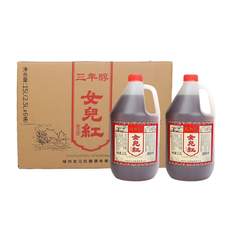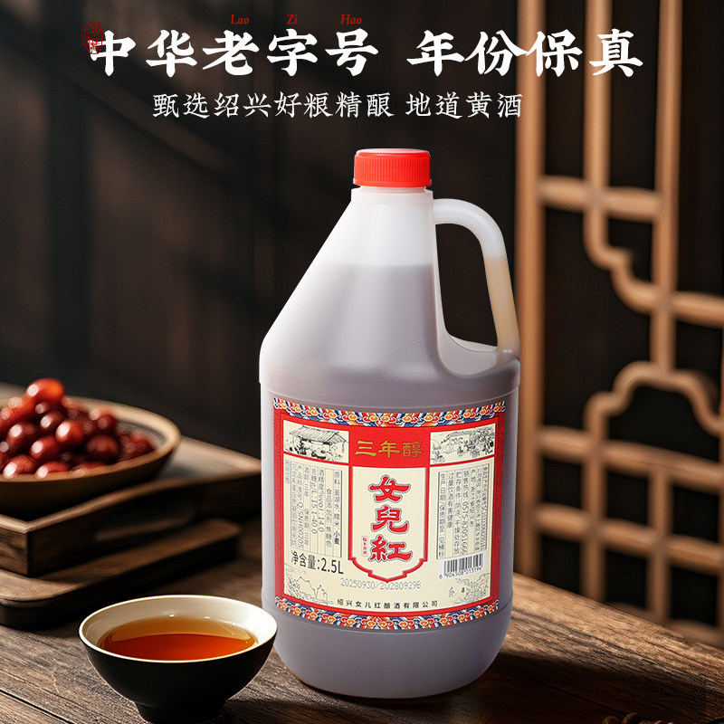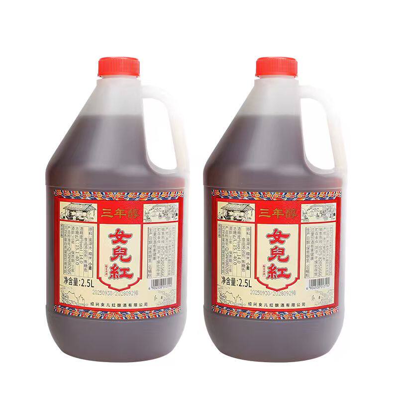 📚 正宗绍兴女儿红黄酒三年陈年花雕酒壶装2.5L*2桶装老酒料酒泡阿胶