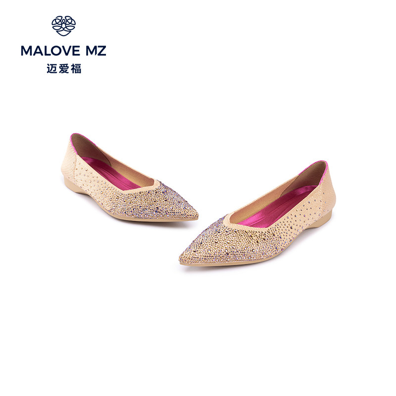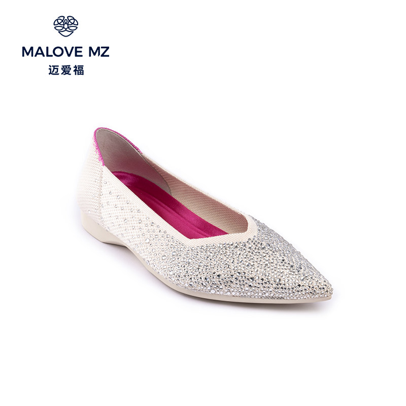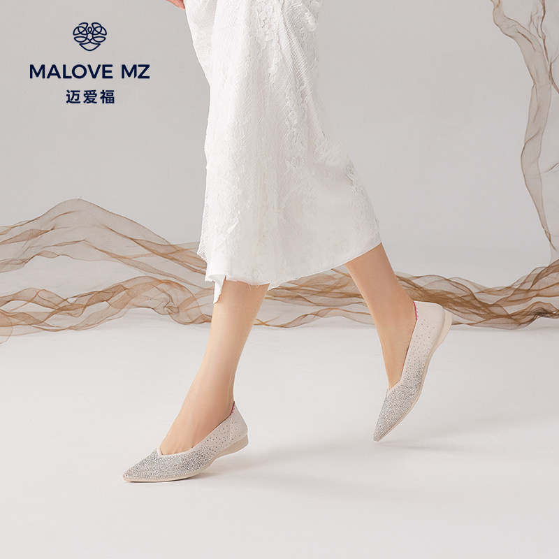 📚 MALOVE MZ王妃鞋2026新款时尚水钻平底鞋百搭舒适尖头浅口单鞋女