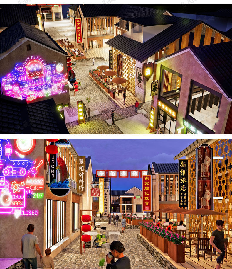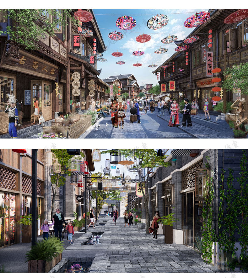 📚 商业街古镇旅游度假区景区新中式老街步行街少数民族风小镇su模型