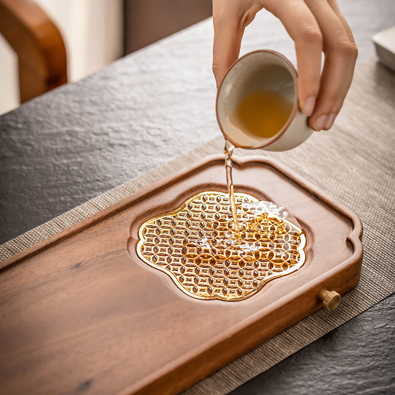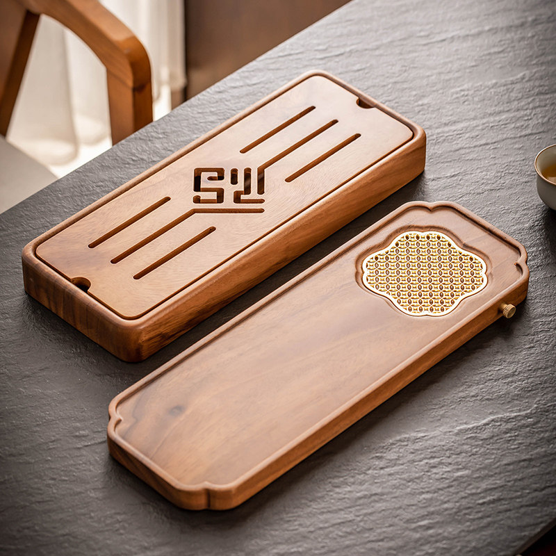 📚 中式胡桃木茶托盘功夫茶具小茶台家用小型沥水茶盘办公实木干泡盘