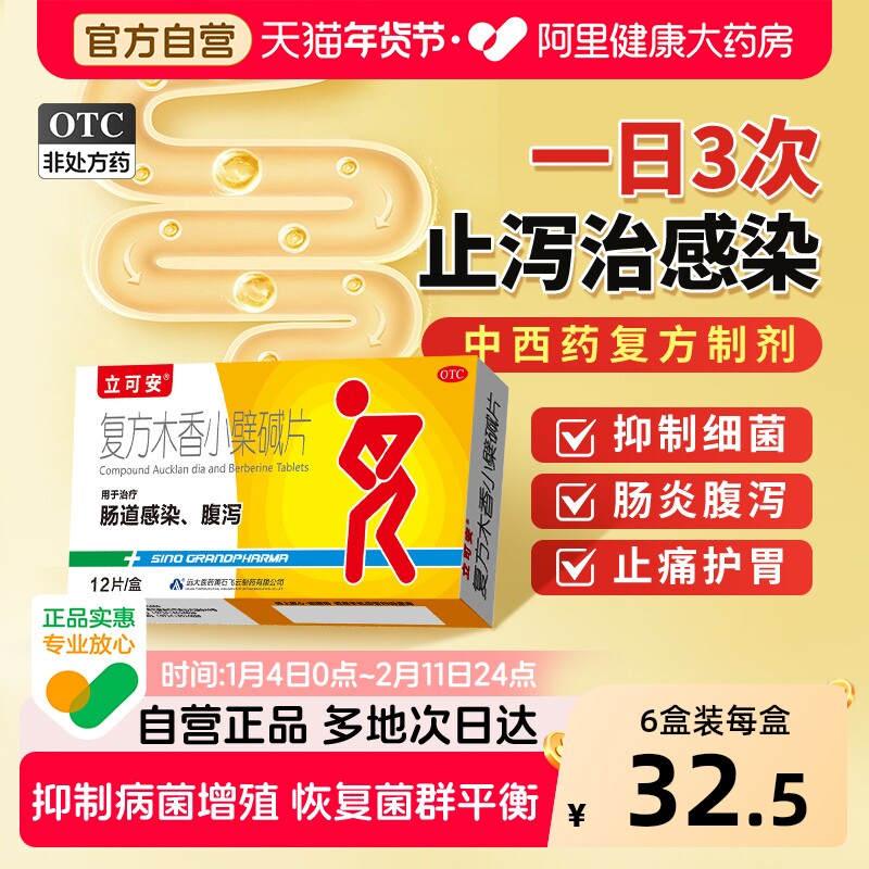 📚 立可安复方木香小檗碱片拉肚子旗舰店止泻药黄连素肠炎成人正品