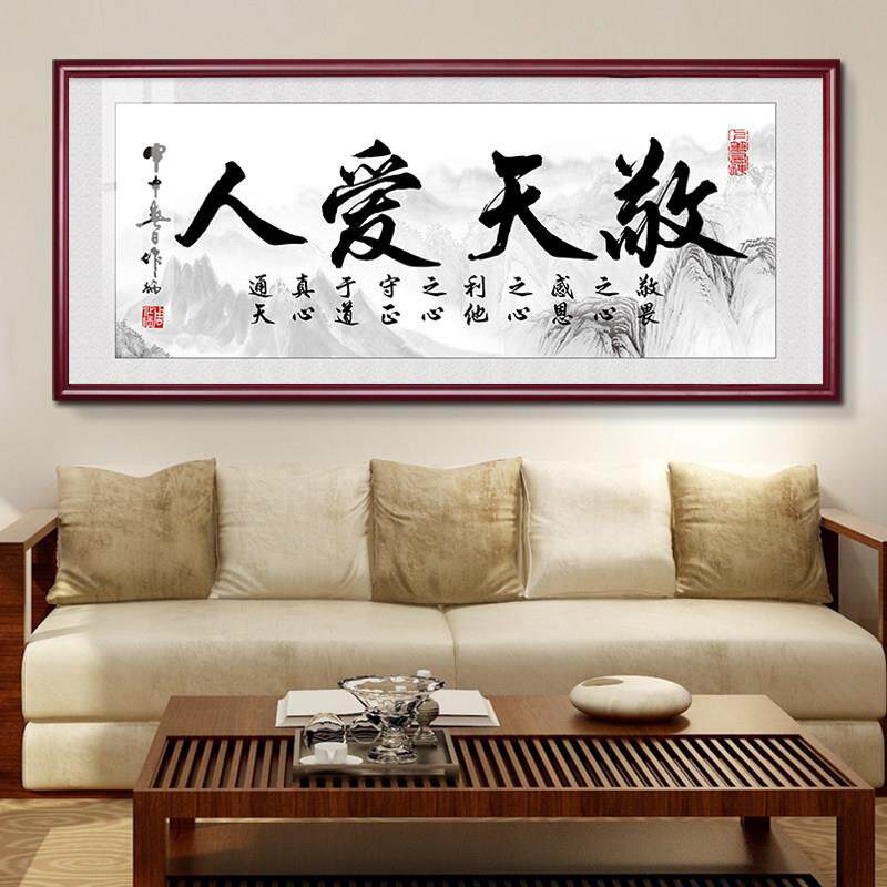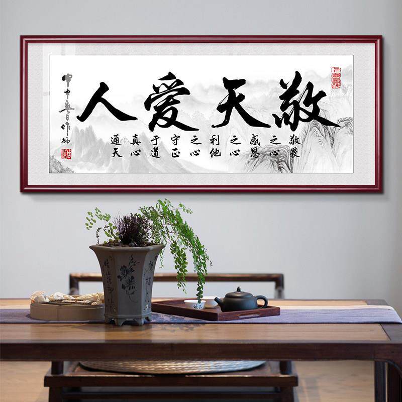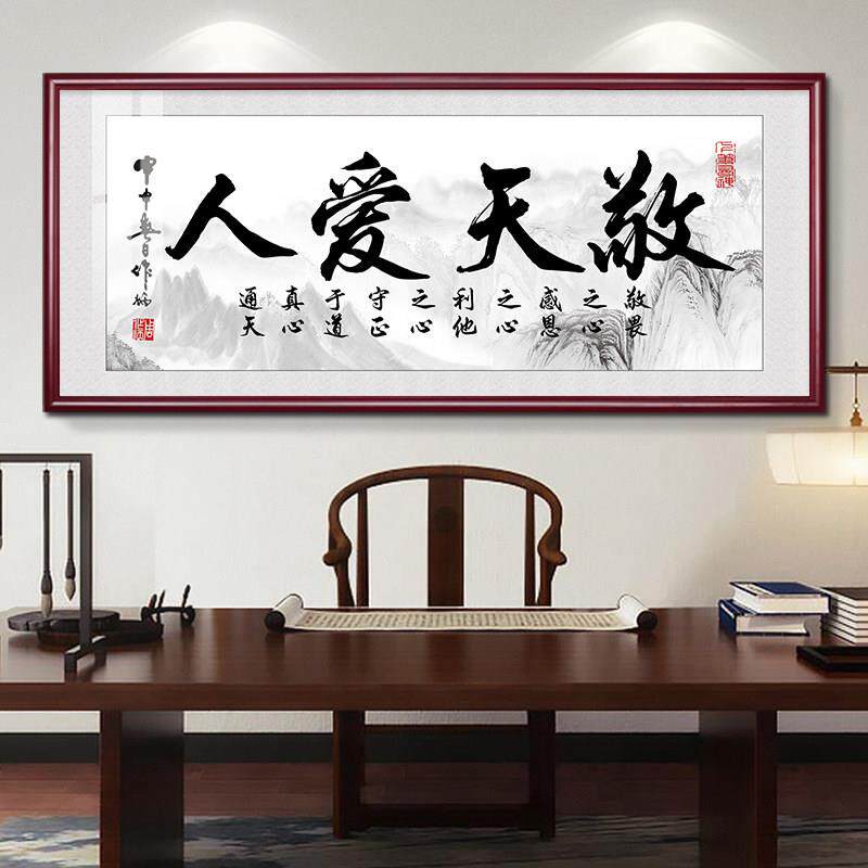📚 敬天爱人书法字画客厅沙发墙挂画老板大办公室书房装饰画茶室牌匾