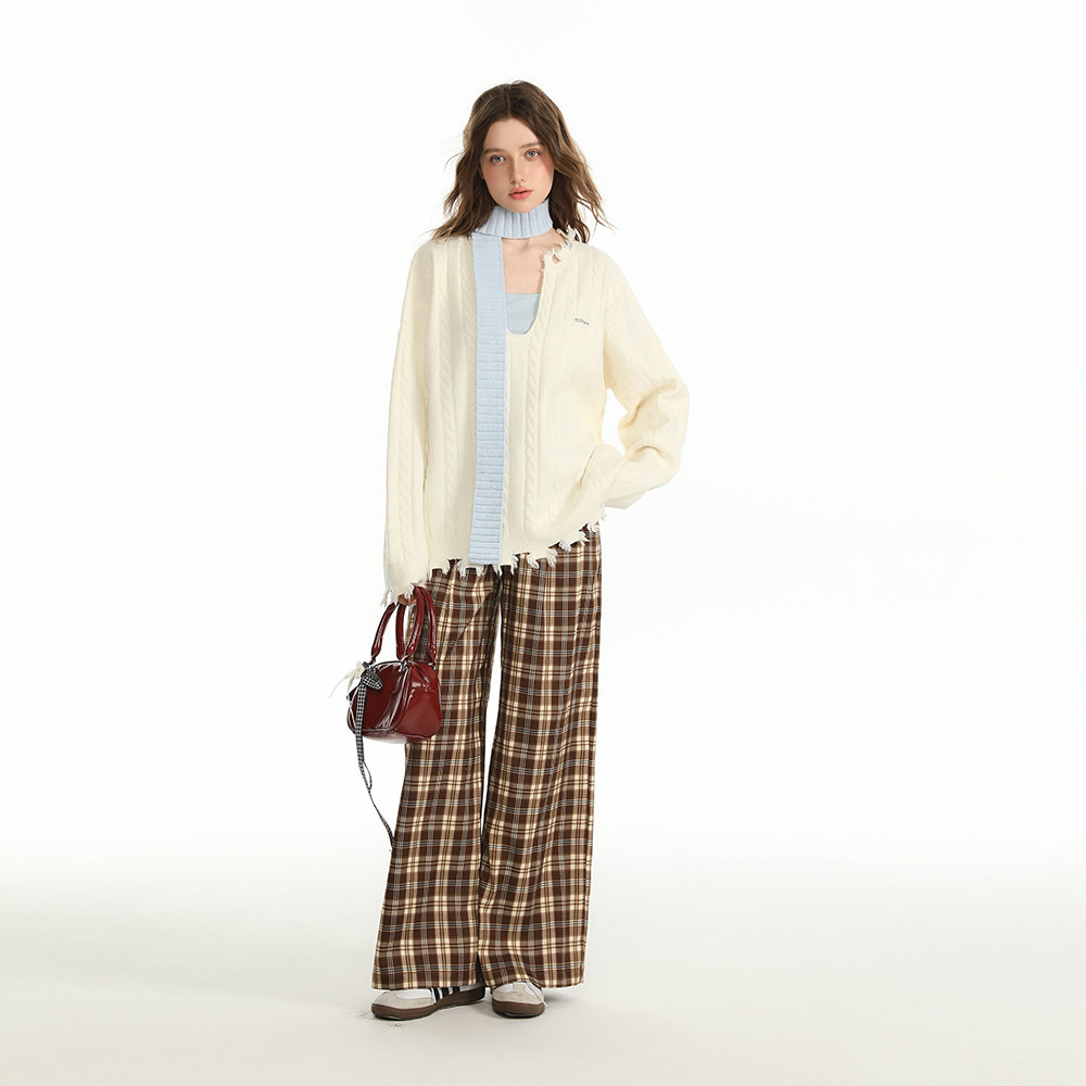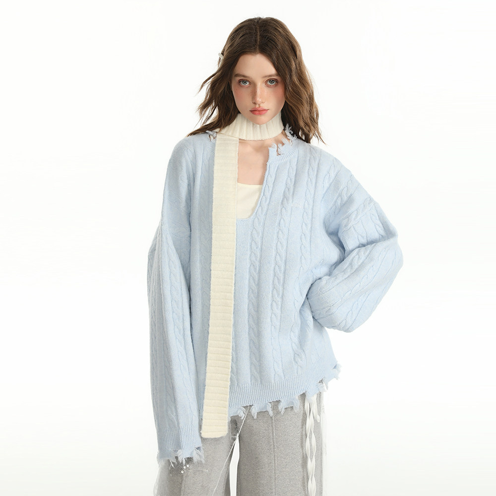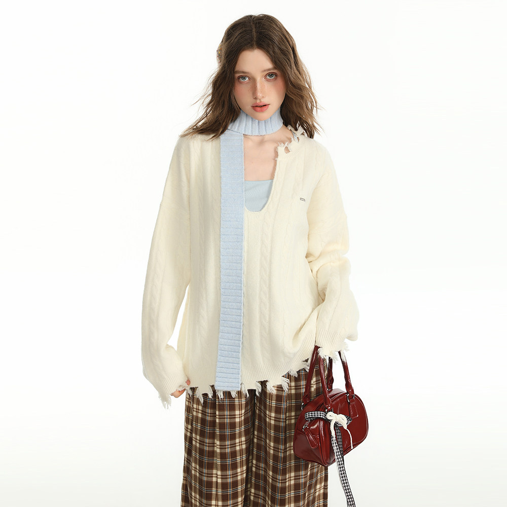 📚 CyNi 设计感U领纽花套头毛衣针织衫套头上衣2024秋女慵懒风高级感