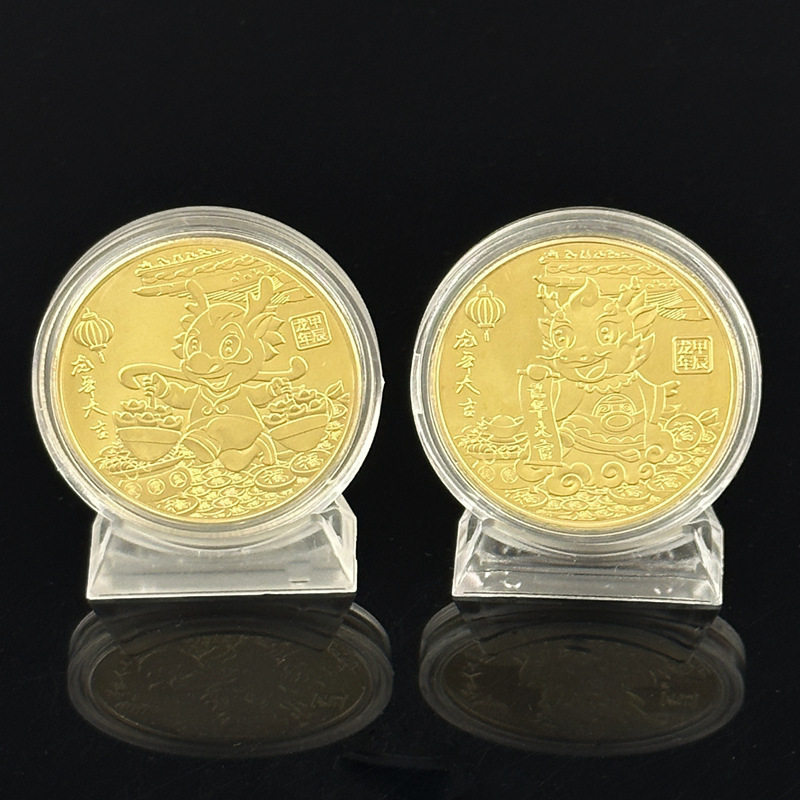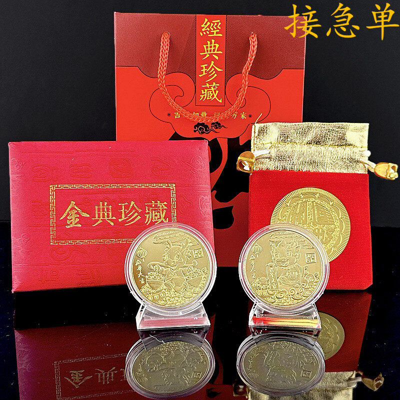 📚 龙年开运实心金币 生肖龙纪念币开门红龙年大吉新年贺岁布袋礼品