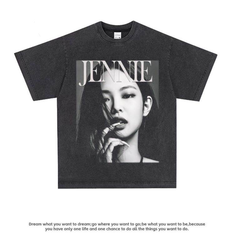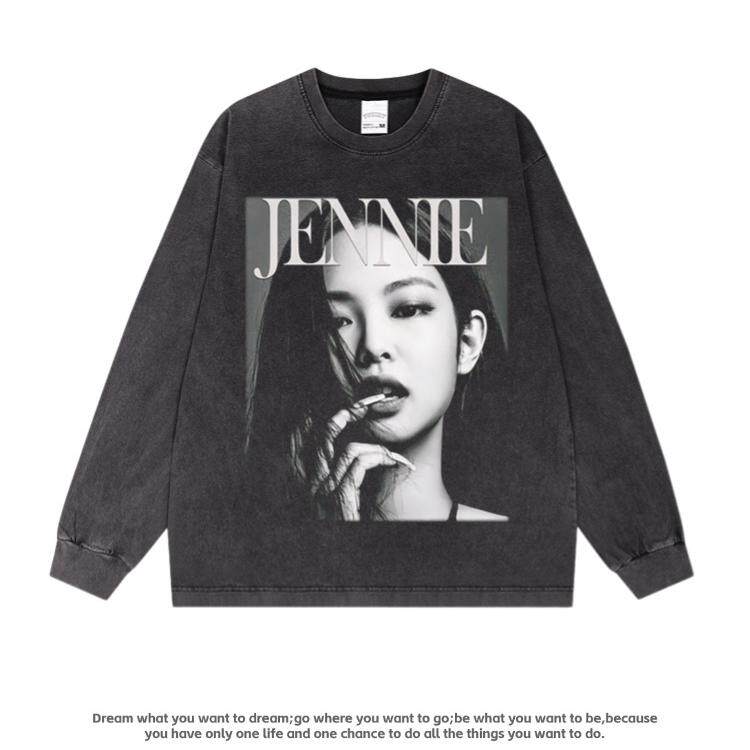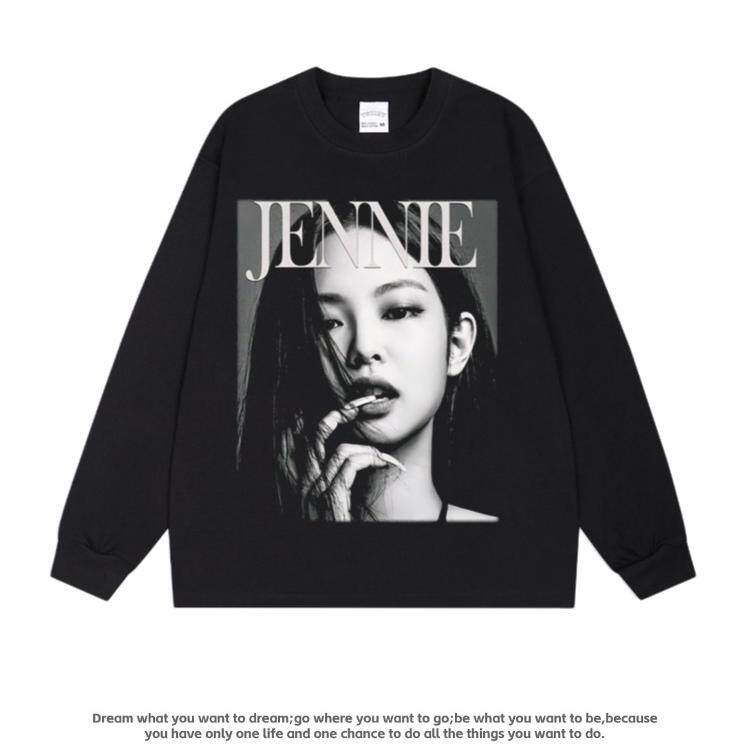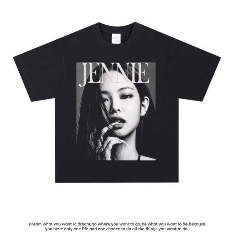 📚 金珍妮 jennie BLACK PINKT恤粉丝应援纯棉街头复古美式长短袖潮