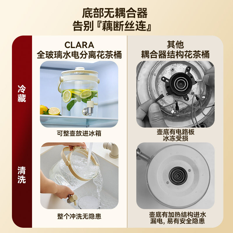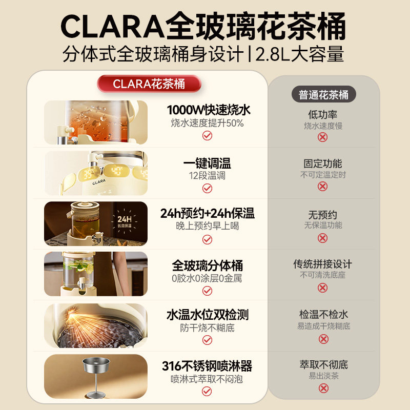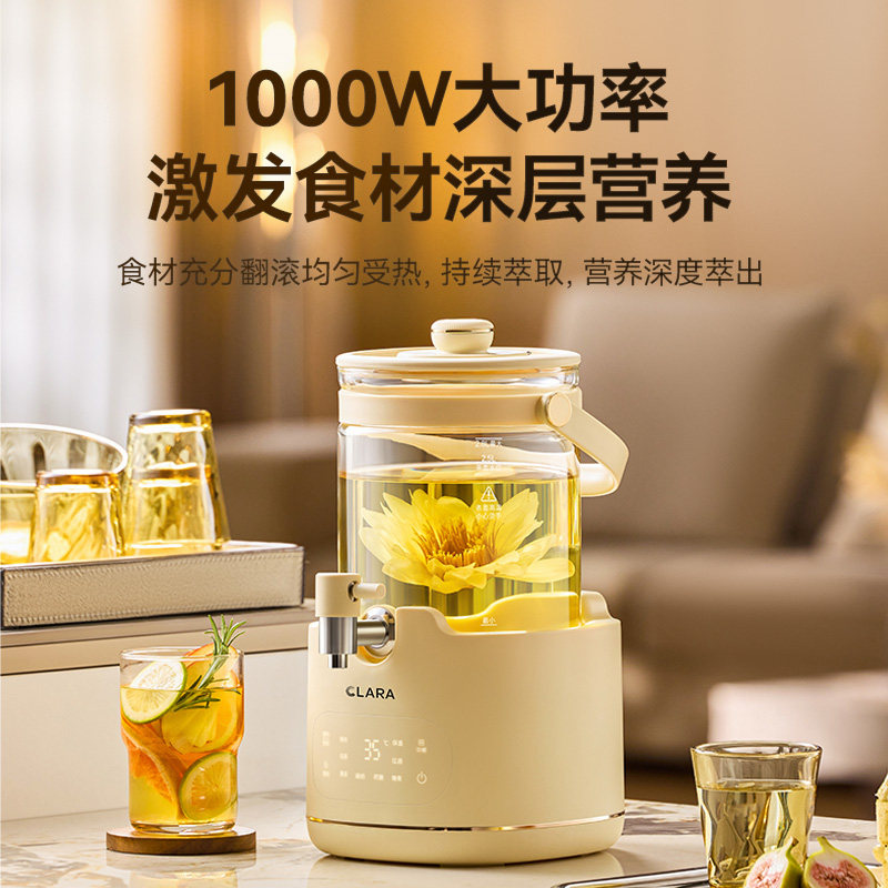 📚 Clara可莱水龙头养生壶2.8L全玻璃花茶桶多功能恒温大容量家用