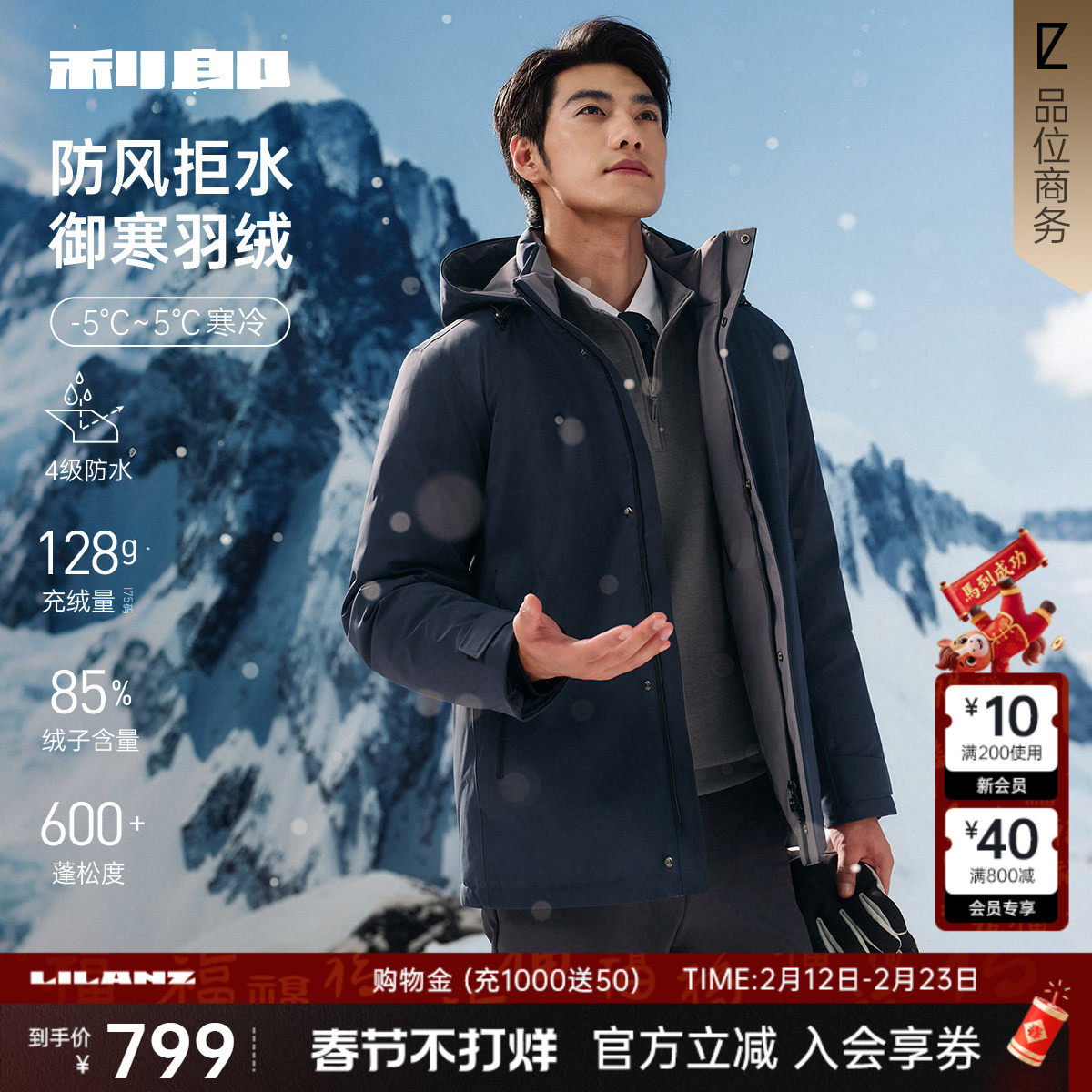 📚 【防风/拒水】利郎官方羽绒服男士2025冬季商务男装加厚连帽外套