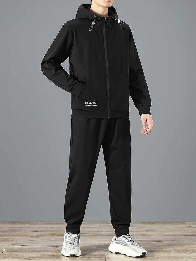 📚 Spring Autumn Men's Zip Up Hoodie Coats Setwear Black Grey H