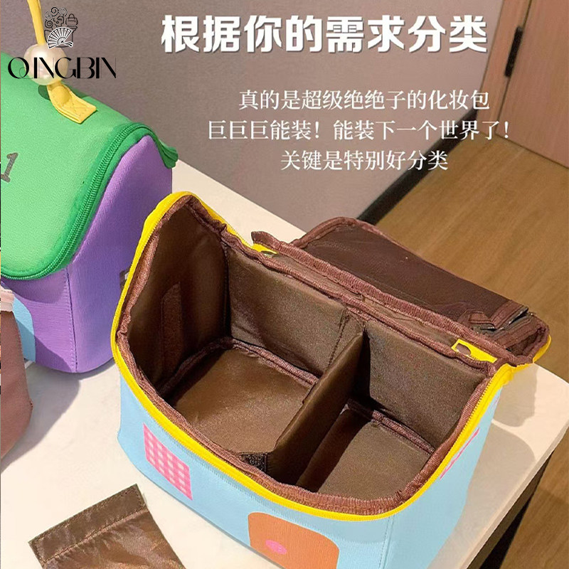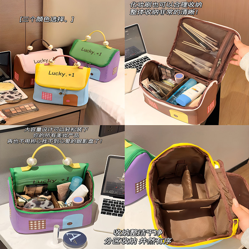 📚 多巴胺房子化妆包女大容量立体不塌分区手提防水旅行品便携收纳袋