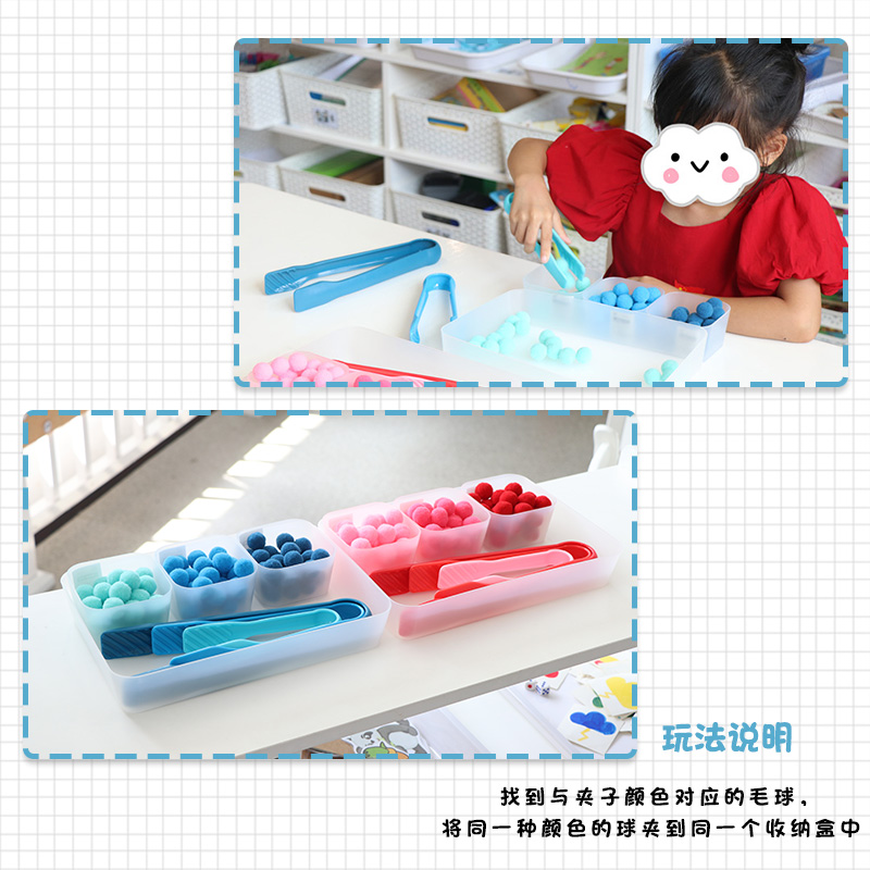📚 蒙氏早教益智玩具教具蒙台梭利精细动作训练夹毛球生活区小班材料