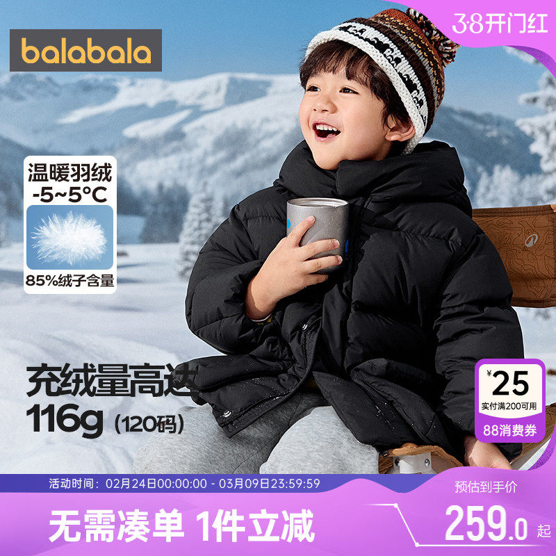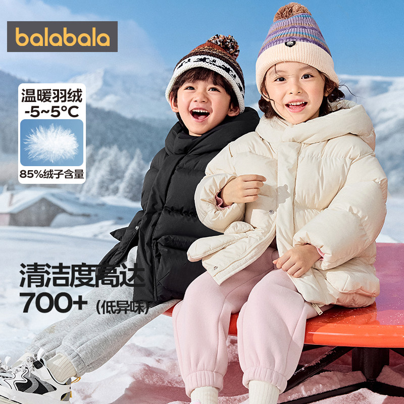 📚 巴拉巴拉儿童羽绒服男童女童中长款外套秋冬款童装宝宝黑色连帽厚