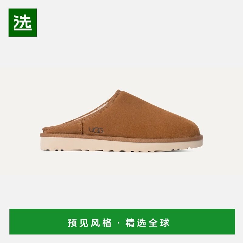 📚 欧洲直邮UGG Classic男士栗色拖鞋羊毛一脚蹬厚底半拖鞋