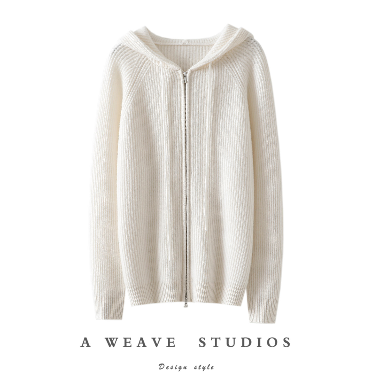 📚 启超情绪感细腻!加厚连帽100%纯山羊绒拉链开衫女纯羊绒毛衣帽衫