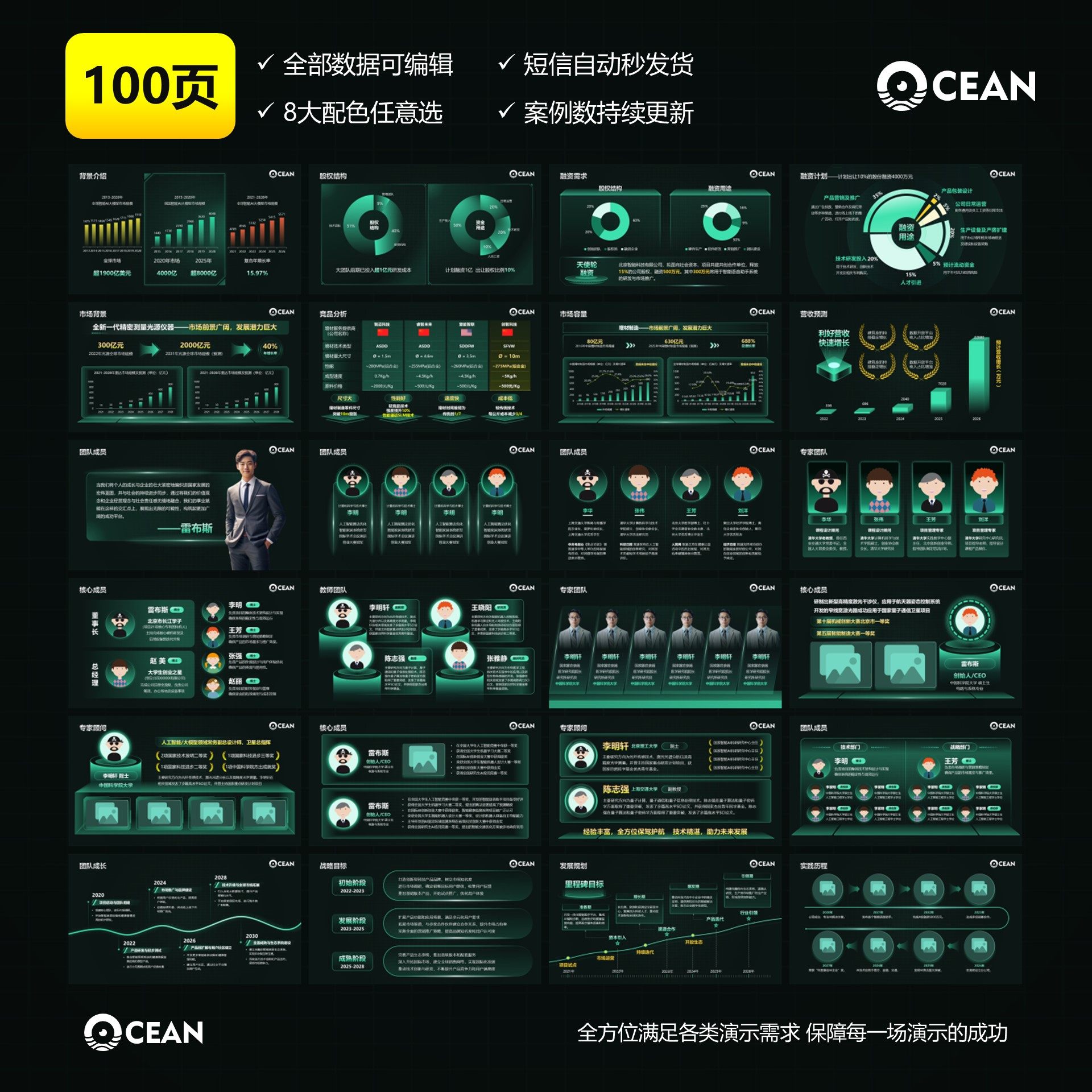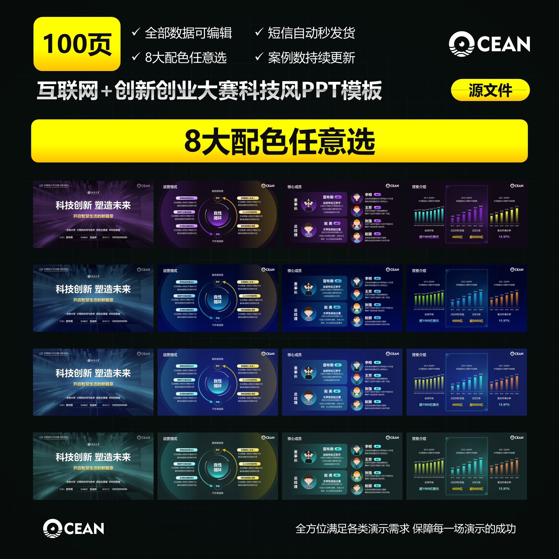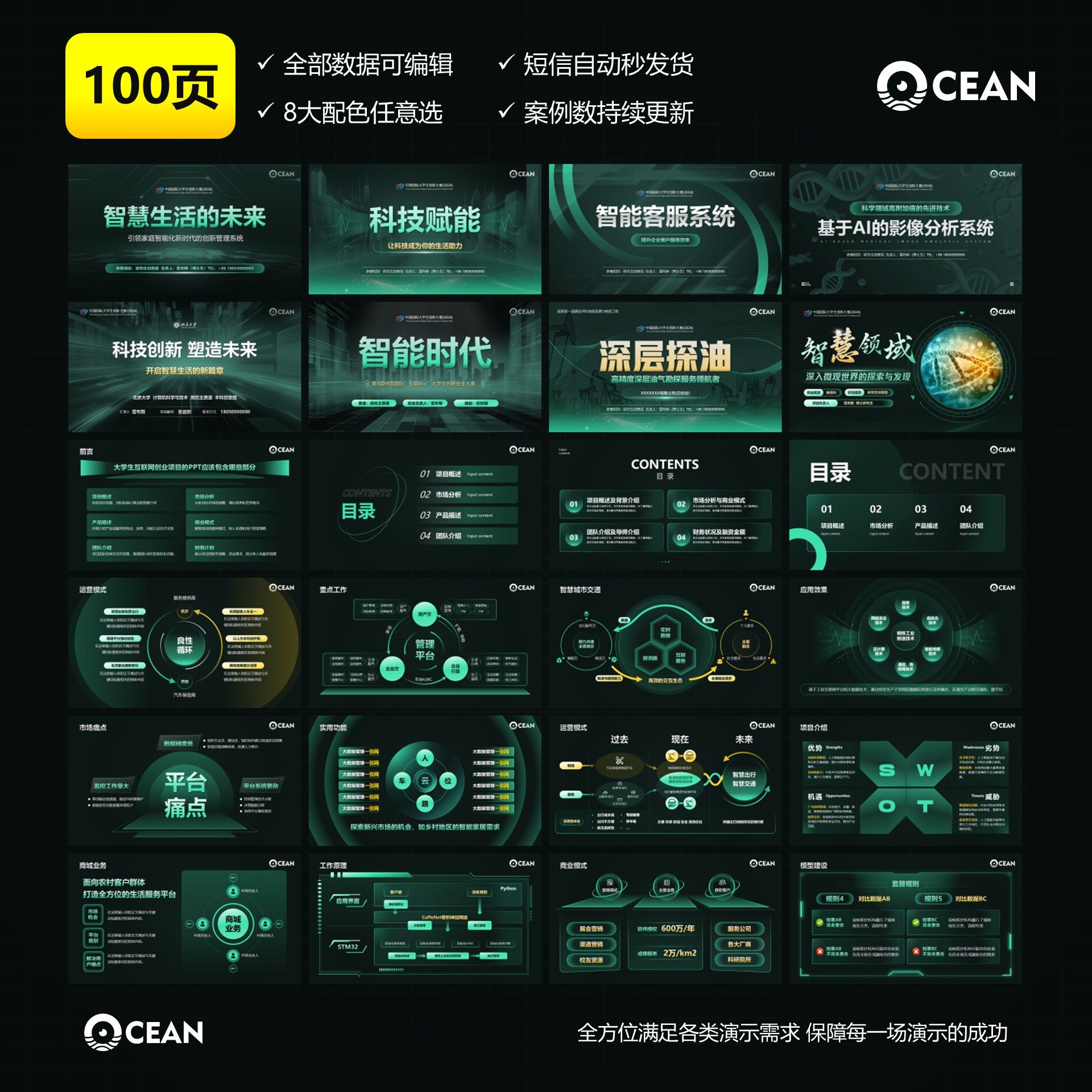 📚 100页创新创业PPT模板挑战杯互联网+高教主赛道科技风PPT模板