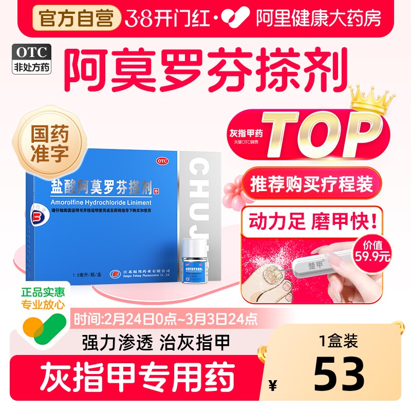 📚 楚甲盐酸阿莫罗芬搽剂正品旗舰店灰指甲专用药盐酸阿罗莫芬药房
