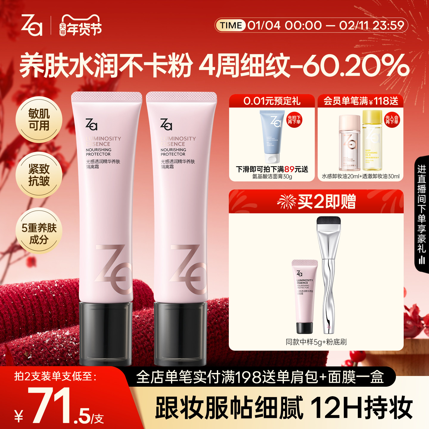 📚 Za姬芮精华养肤隔离妆前乳遮瑕持妆紧致抗皱控油保湿提亮隐匿毛孔