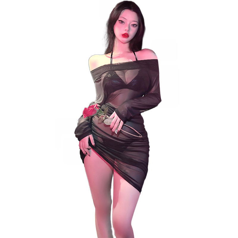 📚 辣妹性感一字肩连衣裙女夏季新款设计感小众收腰显瘦包臀短裙