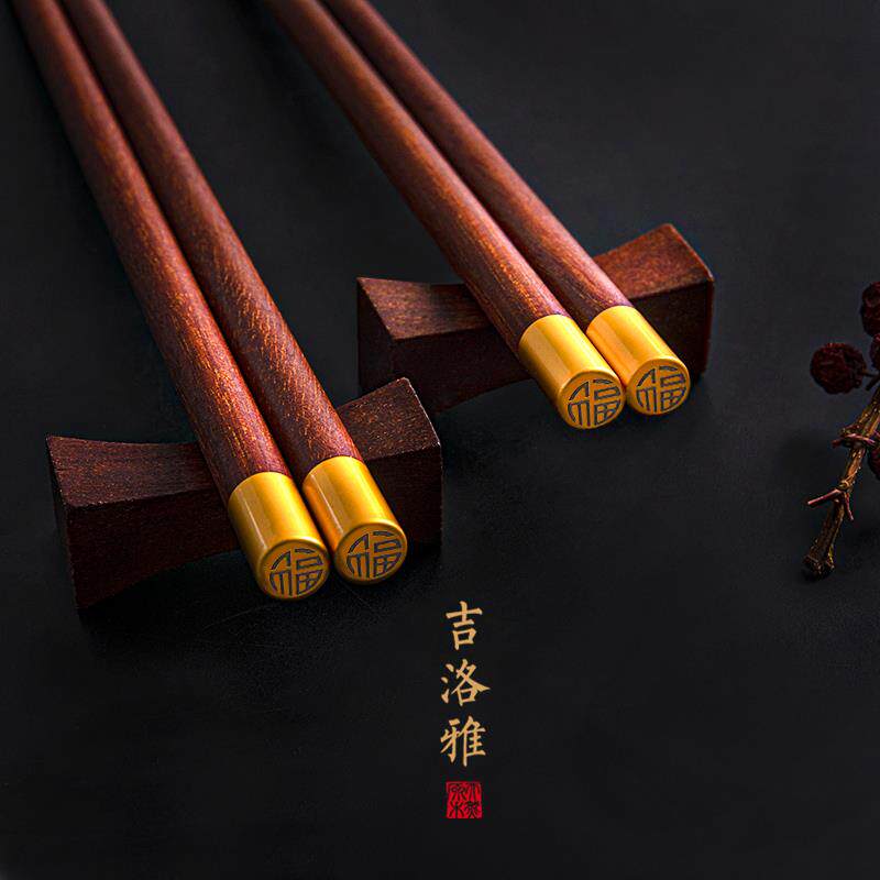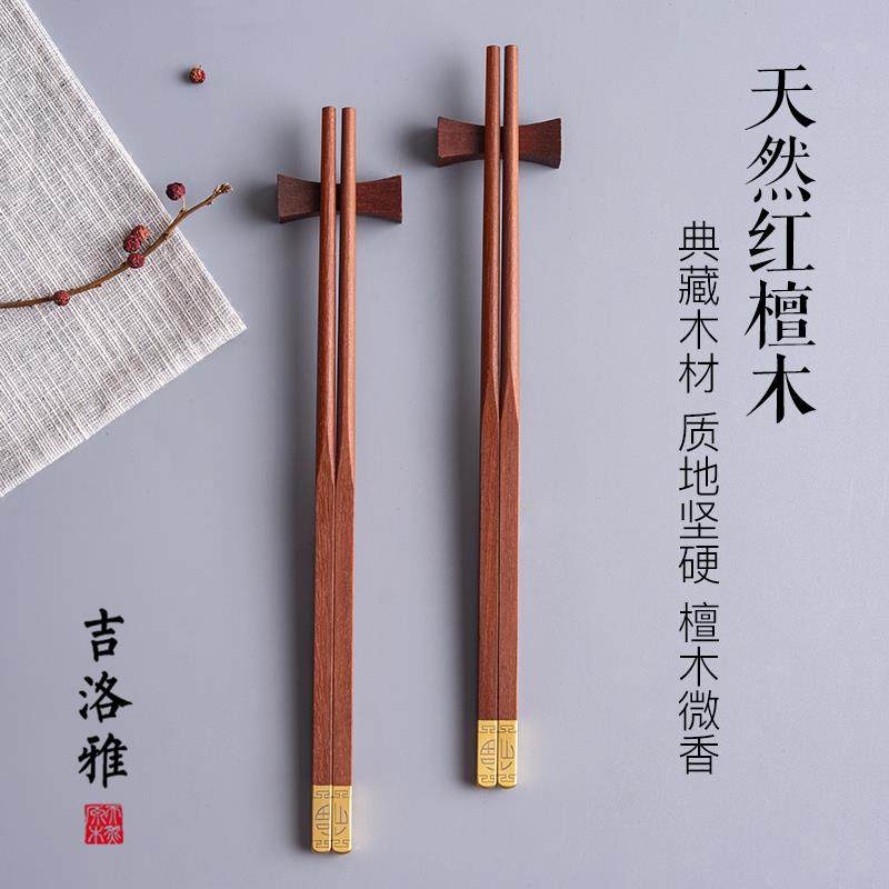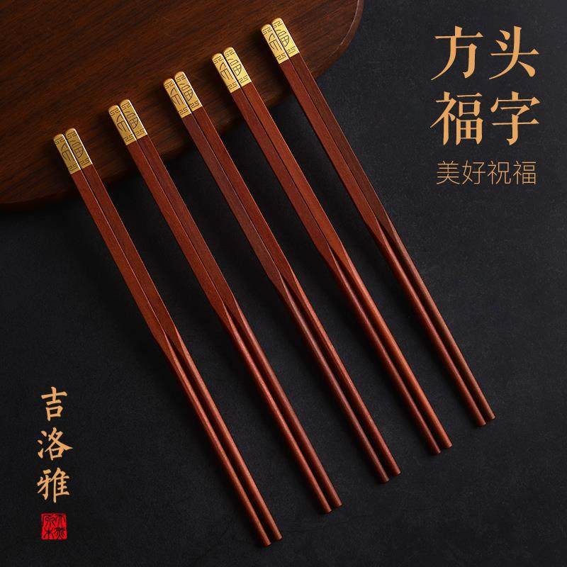📚 xyt天然红檀木筷子福字实木筷无漆无蜡不易发霉家用木