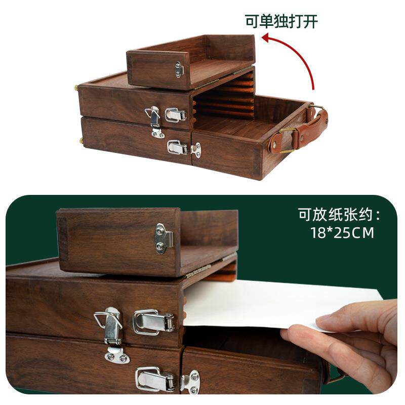 📚 绘无品牌/岳复古水画箱可收纳纸张颜画料户笔彩便携式外写生手提