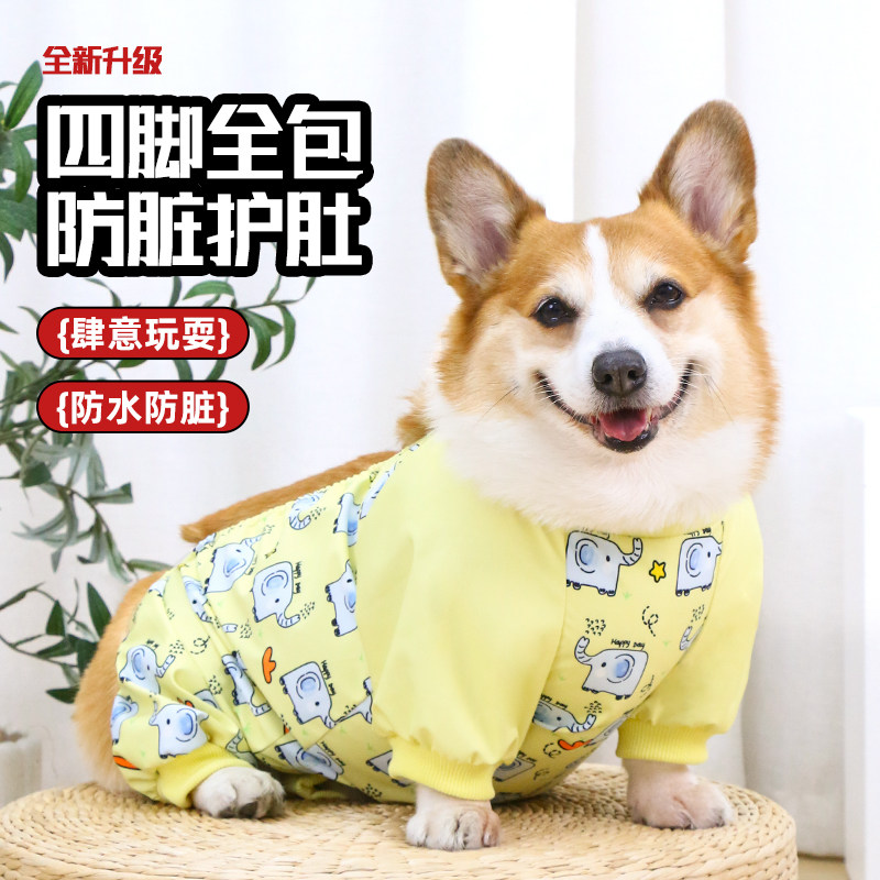📚 宠物狗狗肚兜衣服四脚全包防着凉防水狗雨衣柯基防脏护肚衣防尘裤