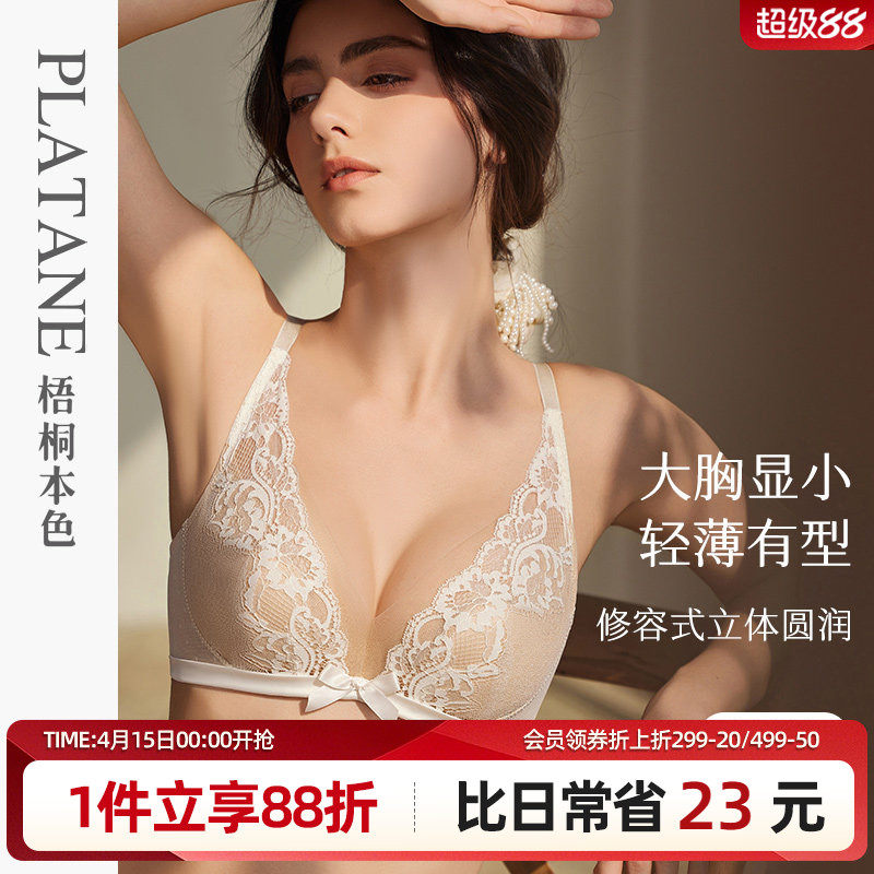📚 梧桐本色内衣女大胸显小性感蕾丝聚拢上托文胸薄款BCD调整型胸罩