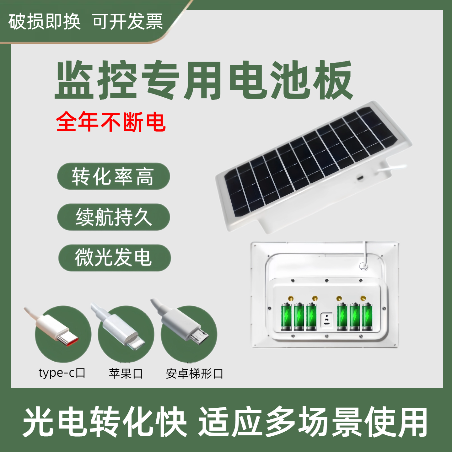📚 5V太阳能板监控供电光伏发电板锂电池户外防水移动充电宝持久续航