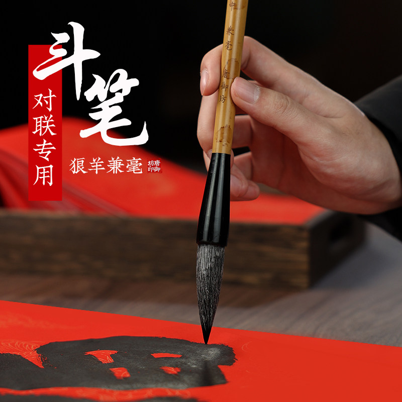 📚 写对联专用笔春联福字红纸斗方专用大毛笔大号斗笔小学生初学兼毫大师专业级书法长锋提斗楷书隶书行楷软笔