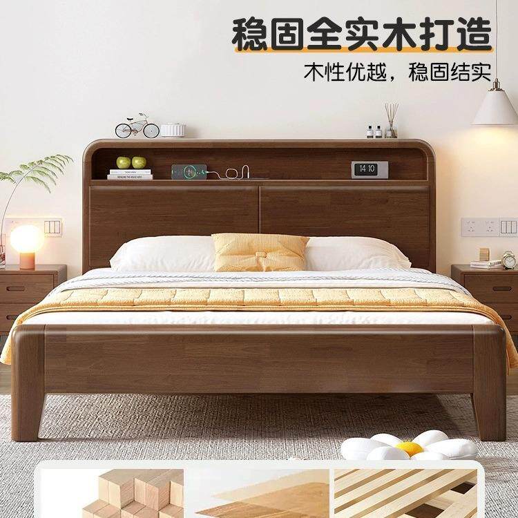 📚 北欧实木床现代简约1米8双人主卧大床卧室储物箱体床1米5单人床