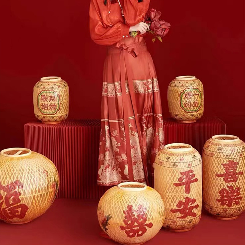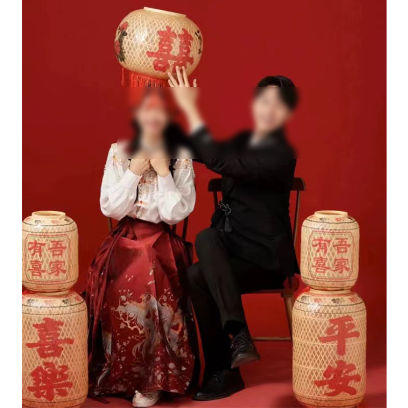 📚 竹编油纸灯笼婚庆拍照道具潮汕传统中式婚礼结婚摄影喜字大红灯笼