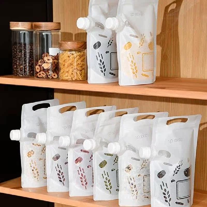 📚 5Pcs Food Packaging Bag Washable Stand Up Grain Sealed Bag