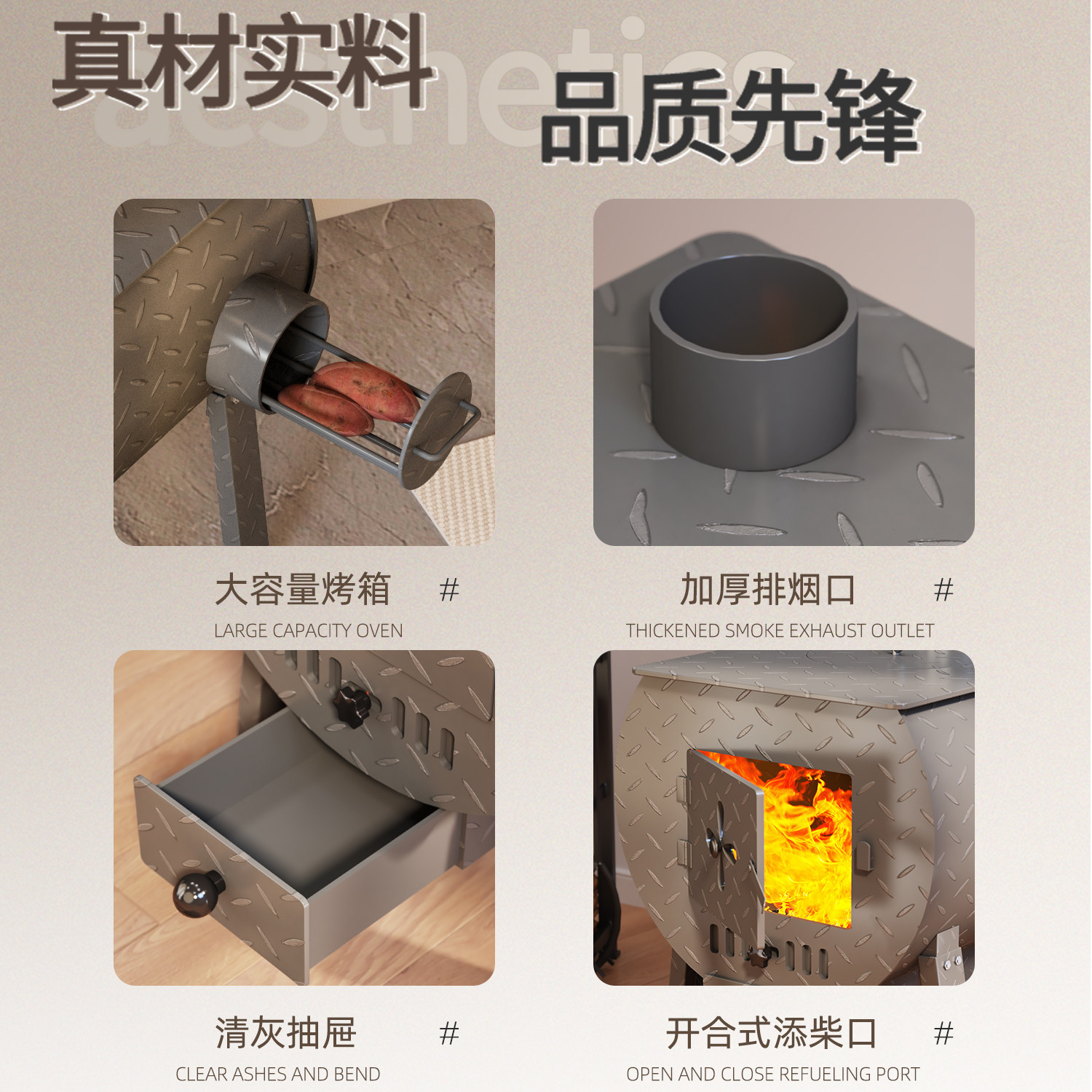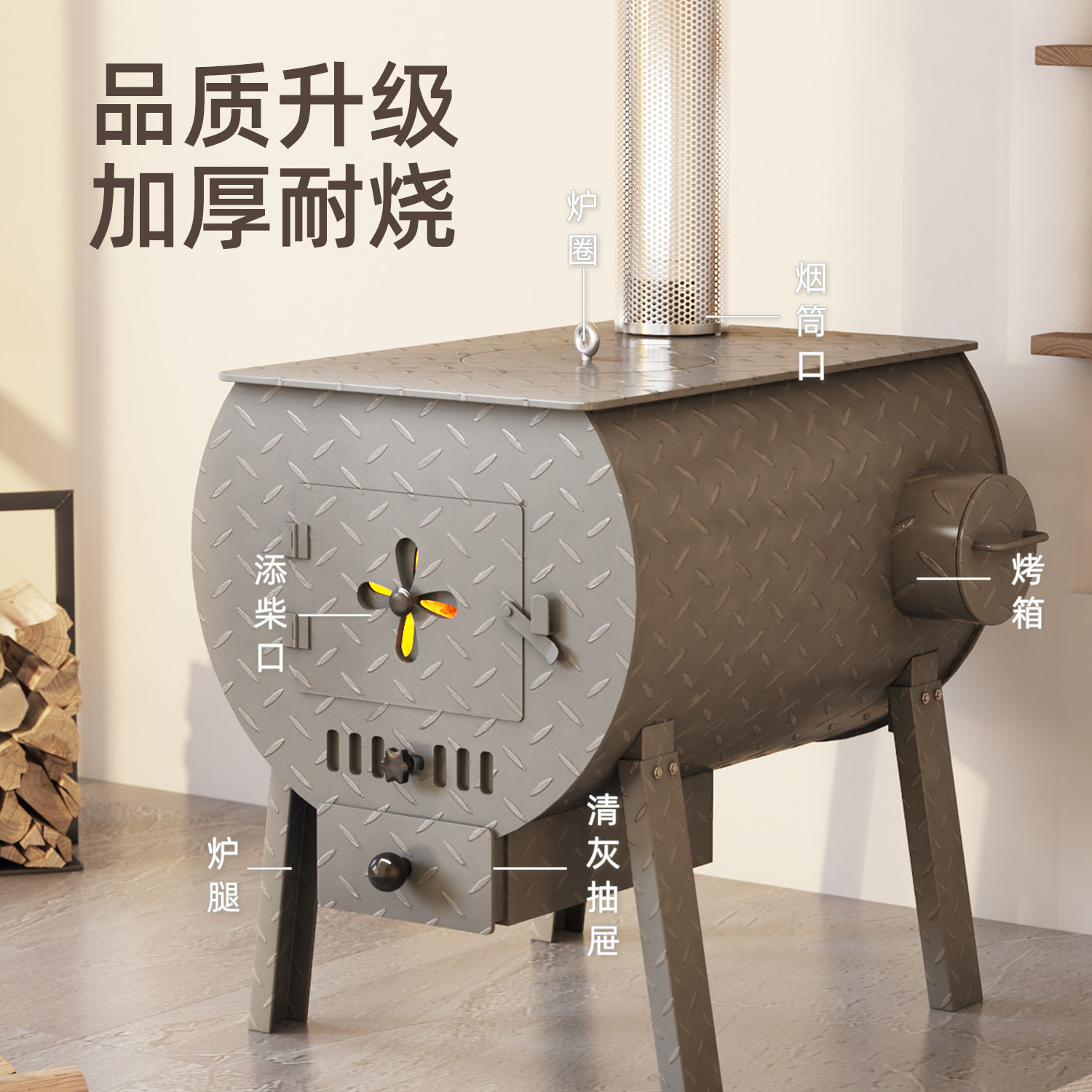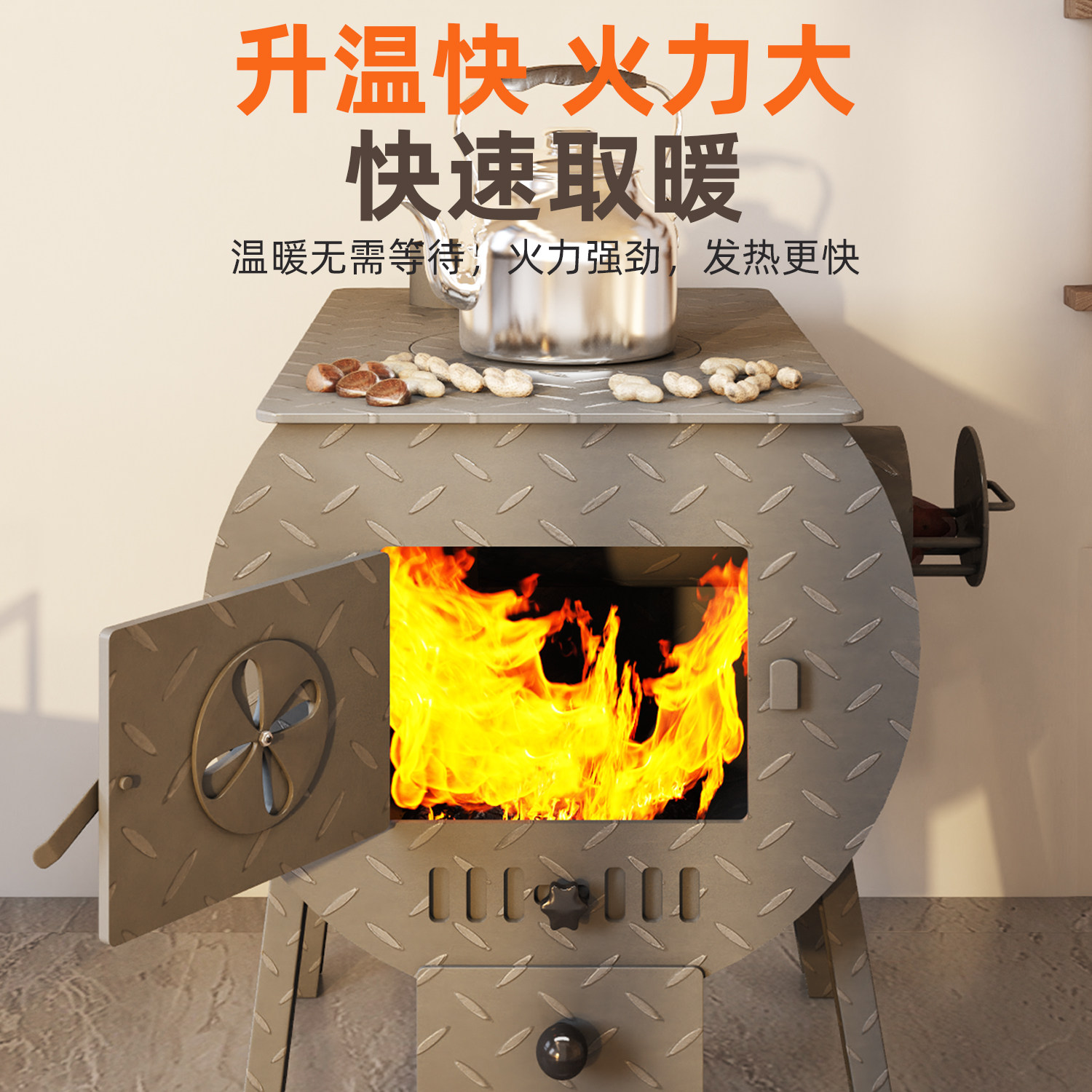 📚 柴火取暖炉农村家用无烟烤火炉冬天室内柴煤两用采暖做饭烧水炉子