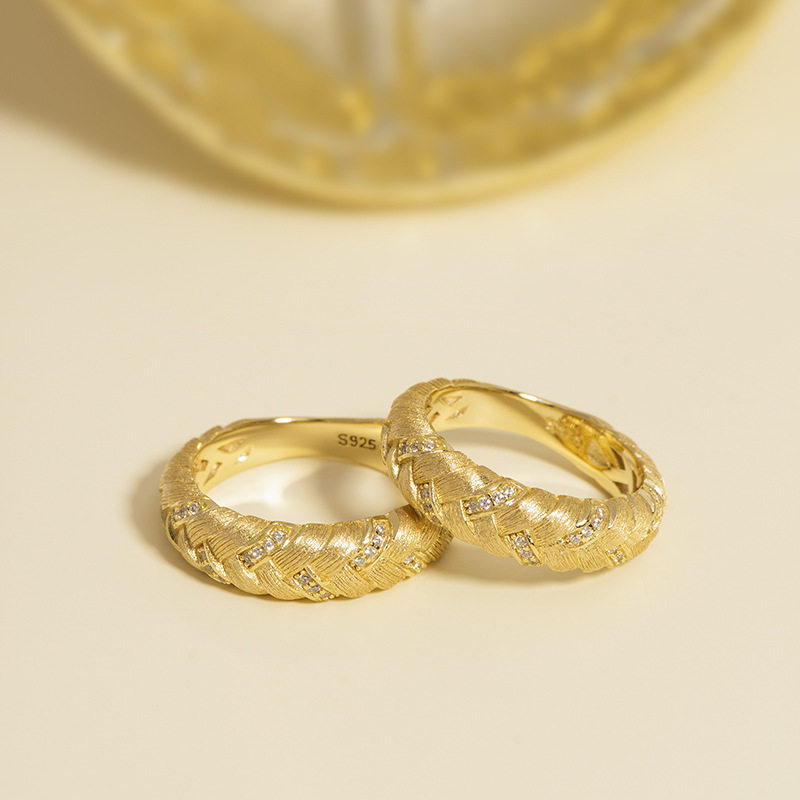 📚 Hot selling pure silver woven ring S925 silver gold-plated