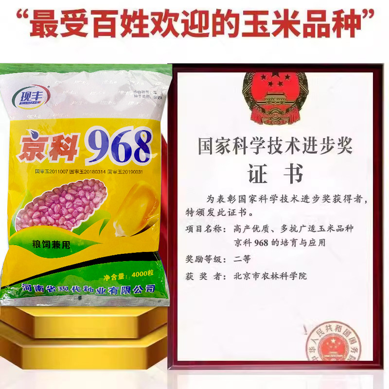 📚 矮大棒京科968国审大田种植杂交玉米种子基地高产大穗抗病玉米种