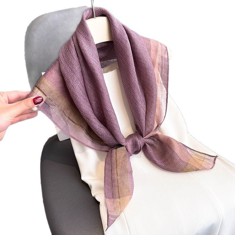 📚 春夏新款跨境仿真丝围巾女气质复古金线丝巾方巾百搭90方巾头巾
