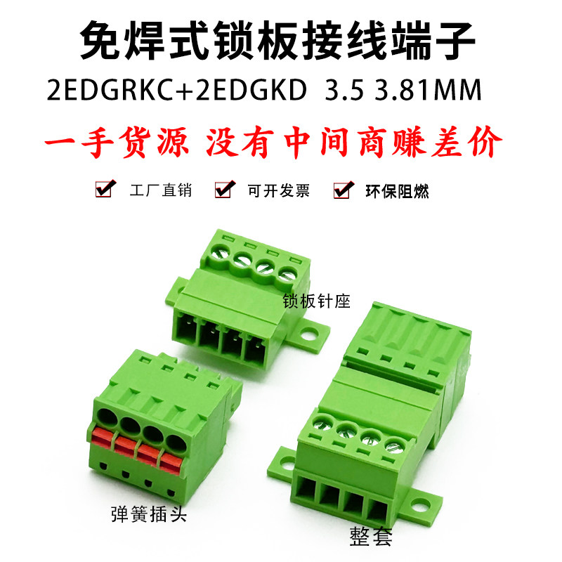 📚 对接免焊2EDGRKC锁板15EDGKP-3.5/3.81mm插拔弹簧端子固定插座KD