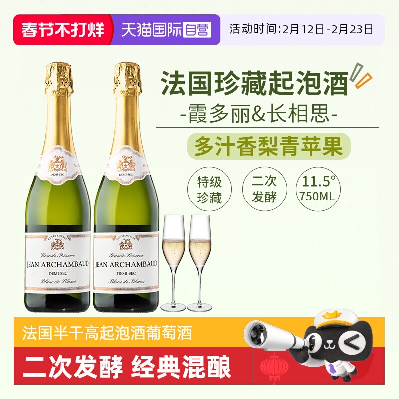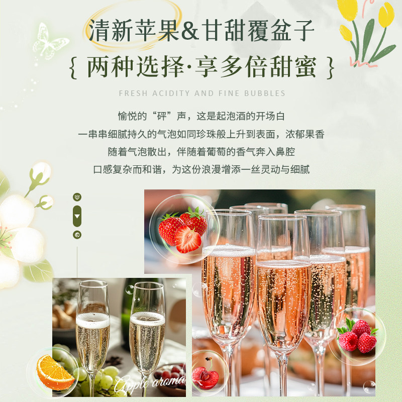 📚 【自营】法国原瓶进口霞多丽长相思半干高起泡酒葡萄酒赠香槟杯