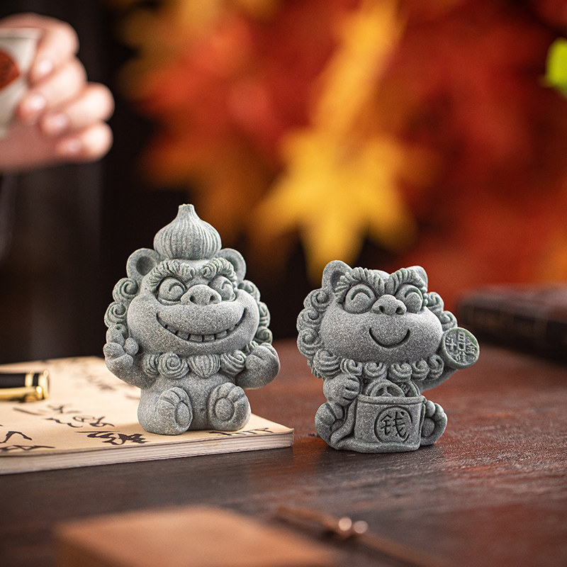 📚 创意胜算在握招财小狮子茶宠摆件国潮玄学祝福工位桌面书房装饰品
