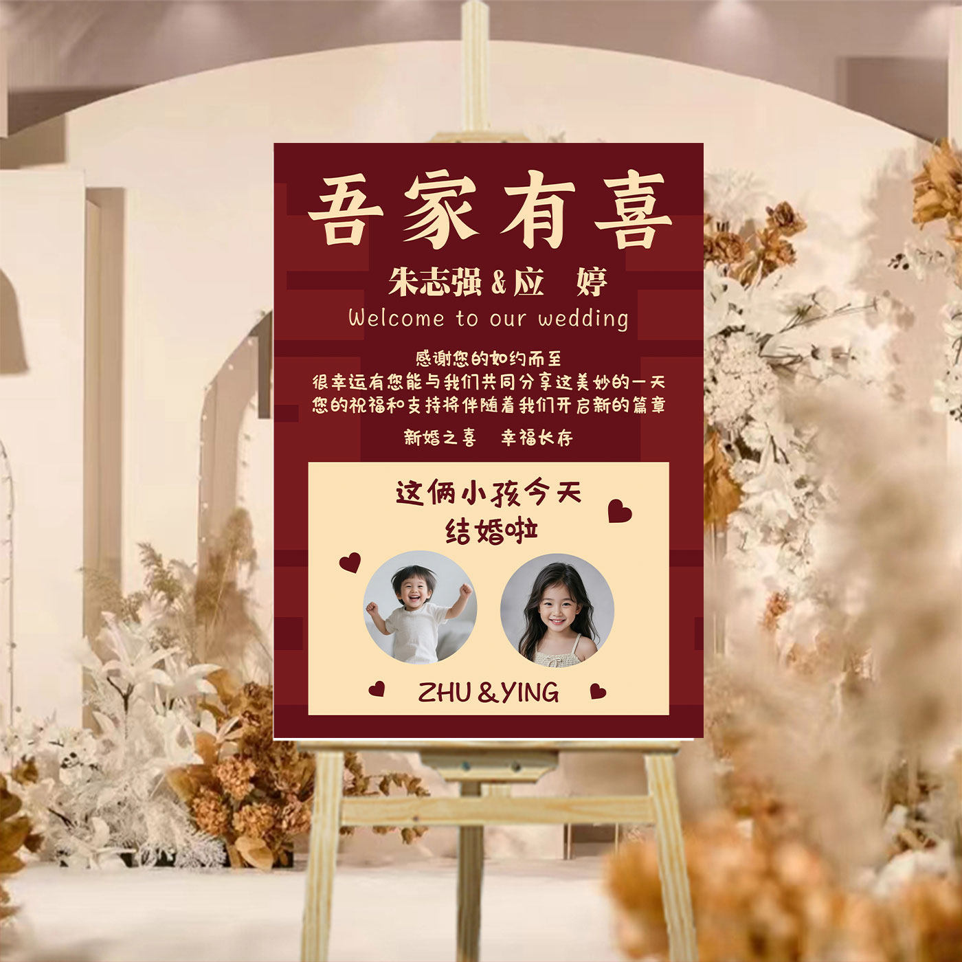 📚 女方出阁宴迎宾牌kt板展架子结婚海报迎宾喜宴现场布置农村背景板