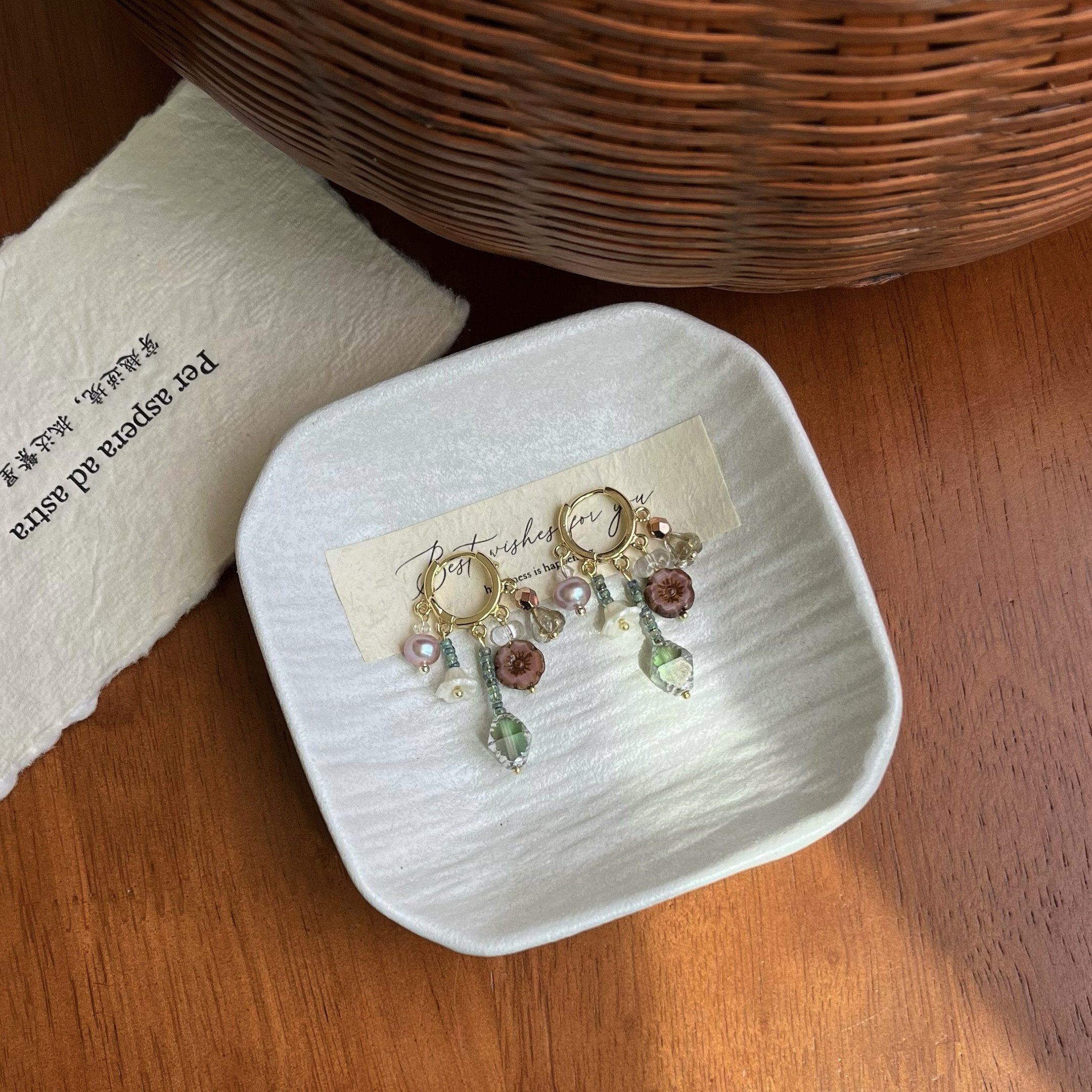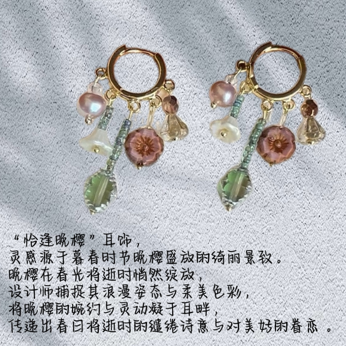 📚 「恰逢晚樱」春季新款捷克琉璃耳环原创小众甜美少女耳低饱和耳坠