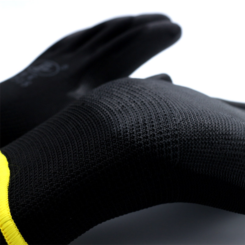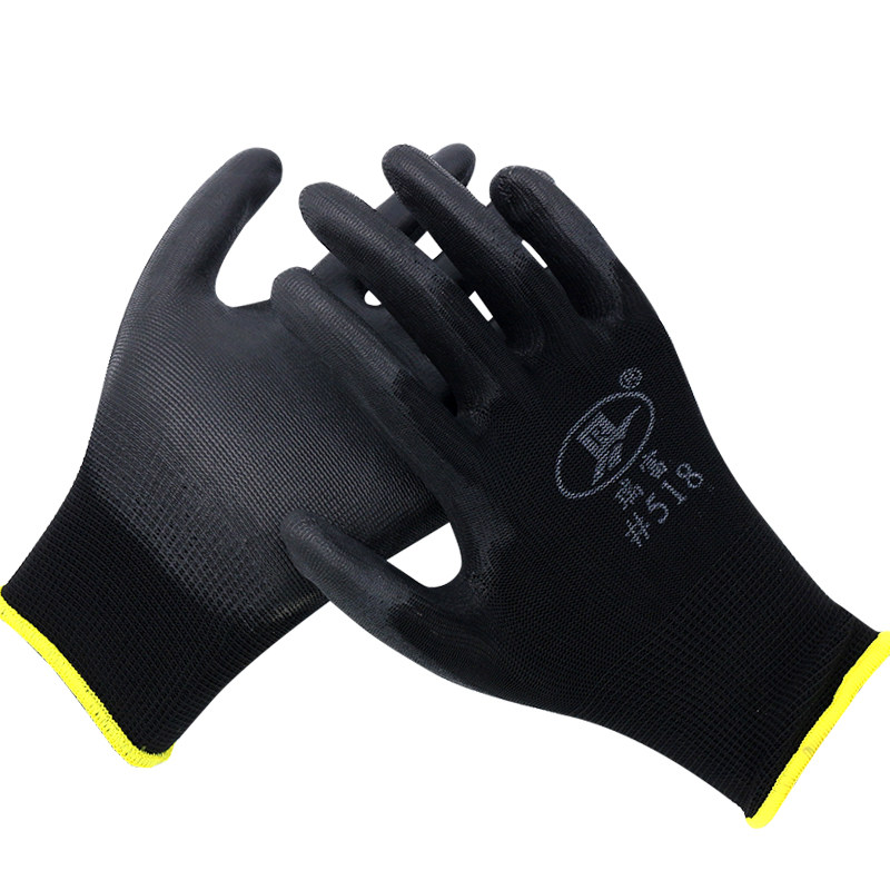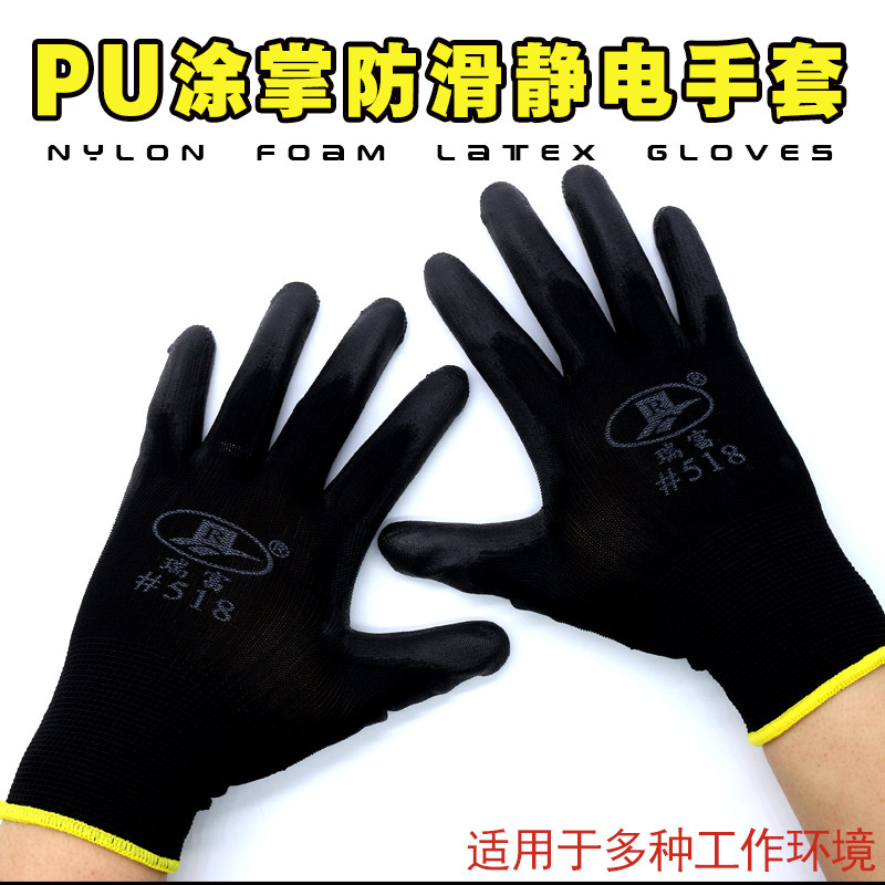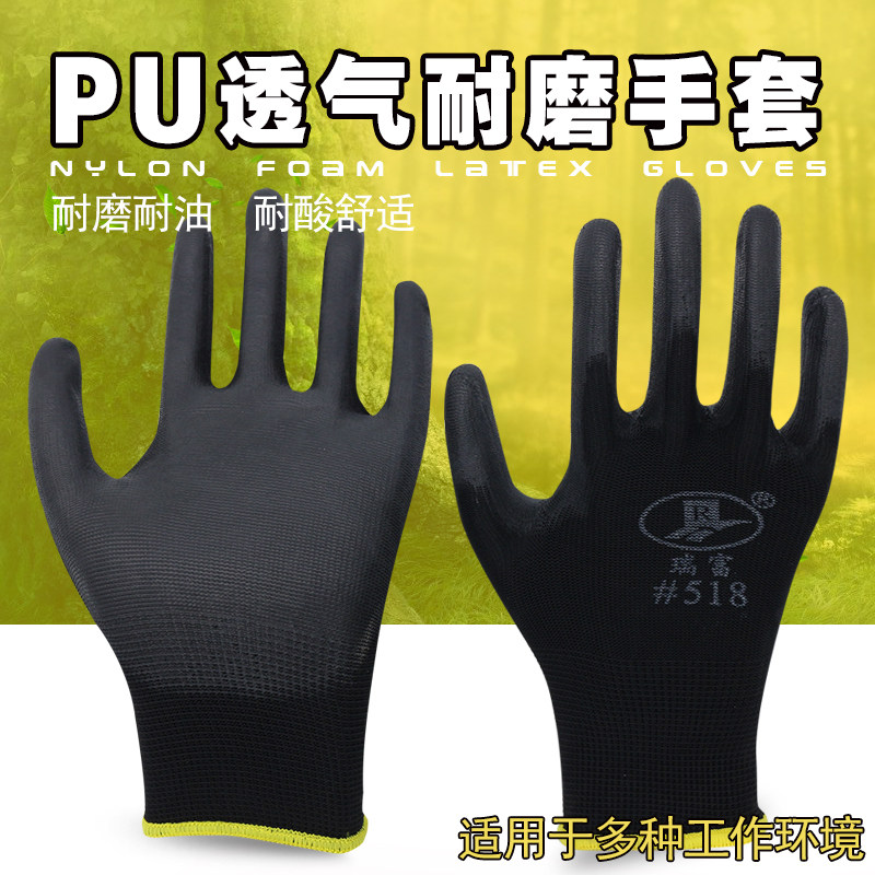 📚 瑞富528黑色劳保工地工作防护斑马纹浸胶涂PU耐磨防滑防静电手套