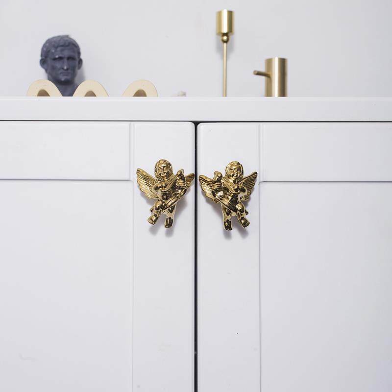 📚 INDOORS黄铜法式复古欧式小天使拉手衣柜门橱柜钛金色单孔小把手