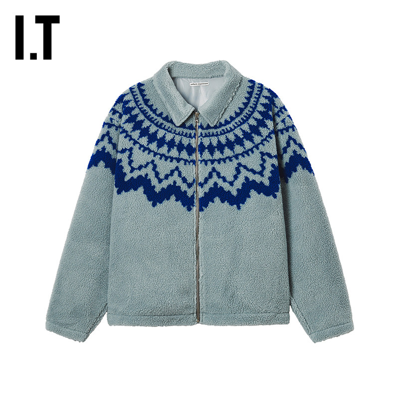 📚 IT uniform experiment男装摇粒绒拉链夹克新款仿羊羔绒翻领外套