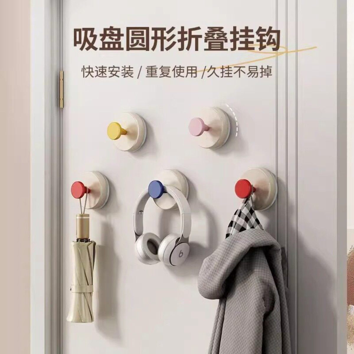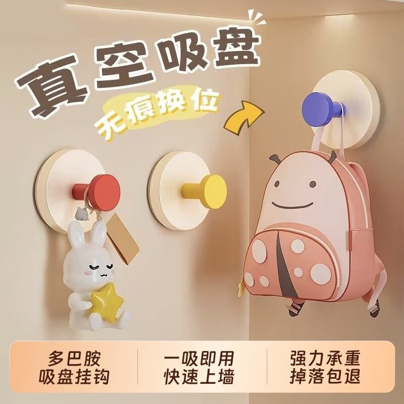 📚 创意可爱多巴胺吸盘式挂钩粘钩强力承重无痕挂钩免打孔学生宿舍用