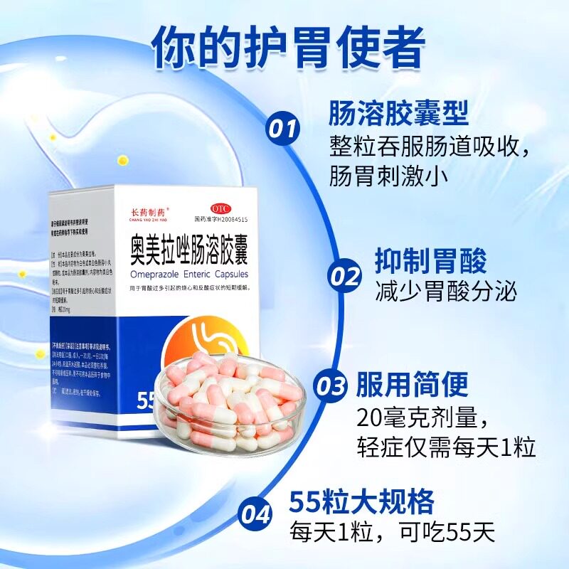📚 奥美拉唑肠溶胶囊胃药正品官方旗舰店胃酸过多烧心反酸药55粒*1盒