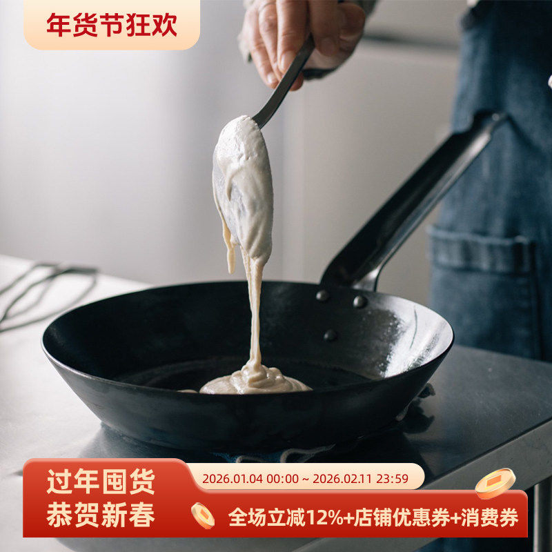 📚 日本原装进口中尾无涂层熟铁平底锅煎蛋锅炒锅烙饼牛排家用燃气灶