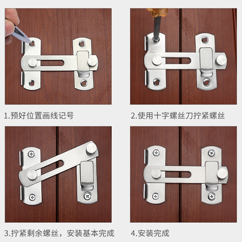 📚 明装不锈钢老式门搭扣移门插销门栓门锁扣免打孔厕所门扣卡扣式