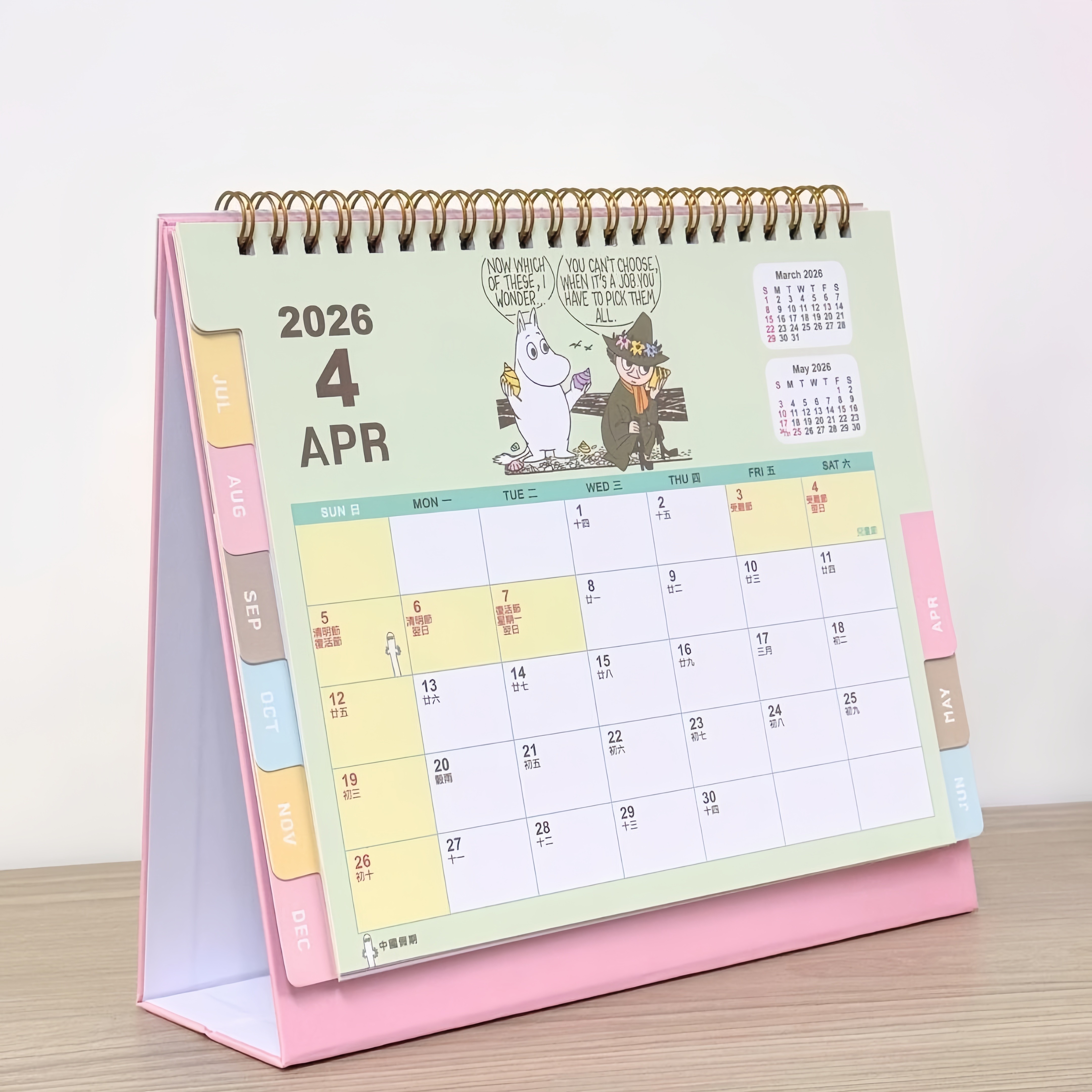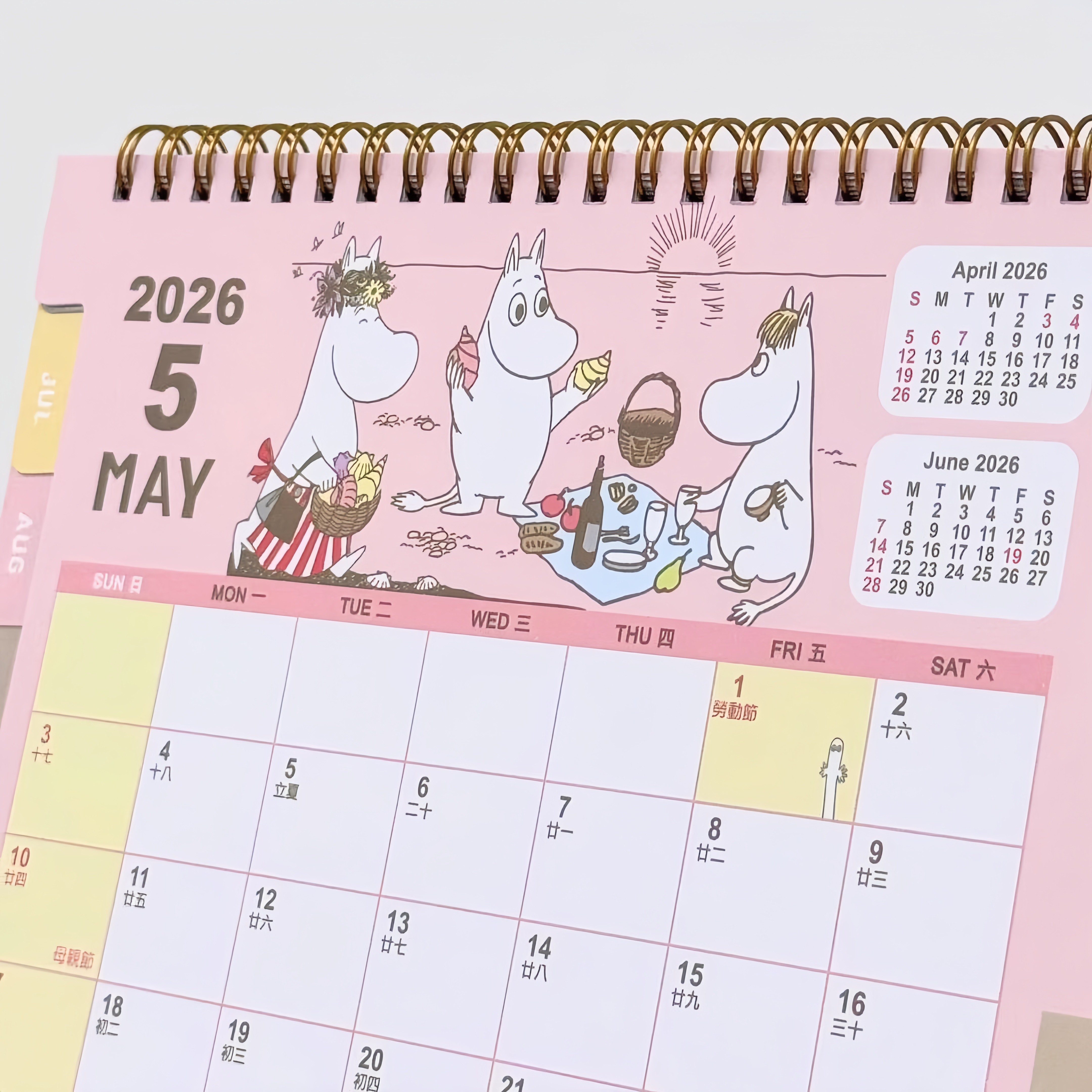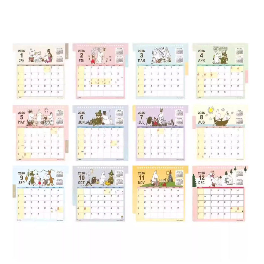 📚 2026年可爱姆明家族台历桌面摆件高颜值卡通翻页日历本打卡计划本