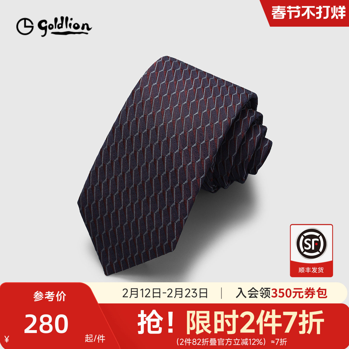 📚 Goldlion/金利来男士桑蚕丝几何渐变色织商务休闲衬衫正装领带男
